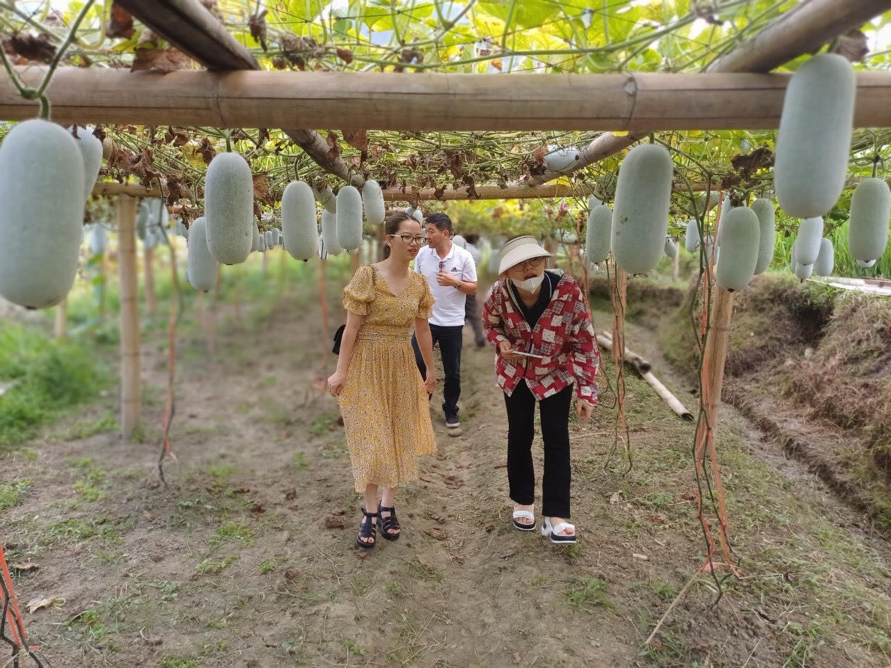 Khách tham quan khu trồng bí xanh thơm tại xã Địa Linh, huyện Ba Bể (Ảnh: Lê Hanh ) |