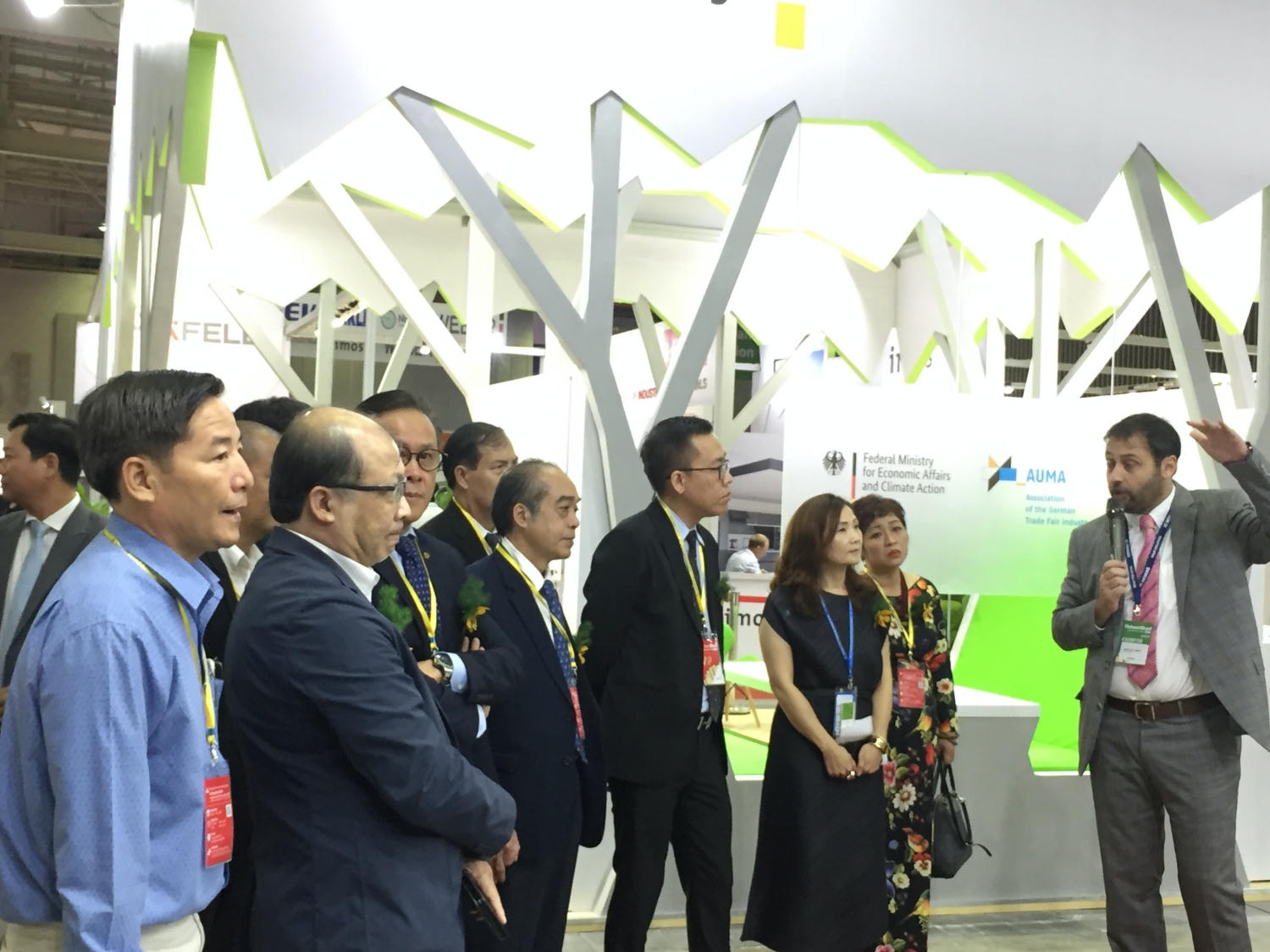 Đại diện thương hiệu giới thiệu với quan khách về sản phẩm của mình. |