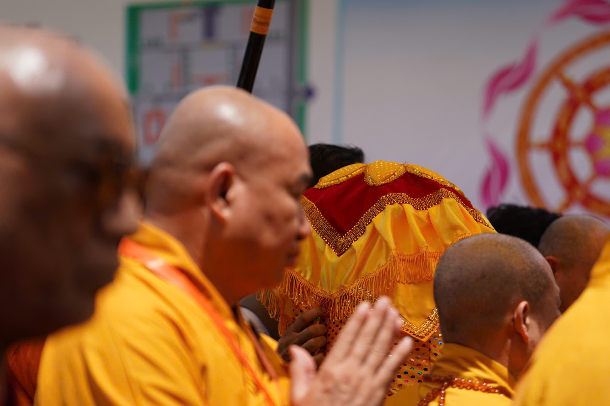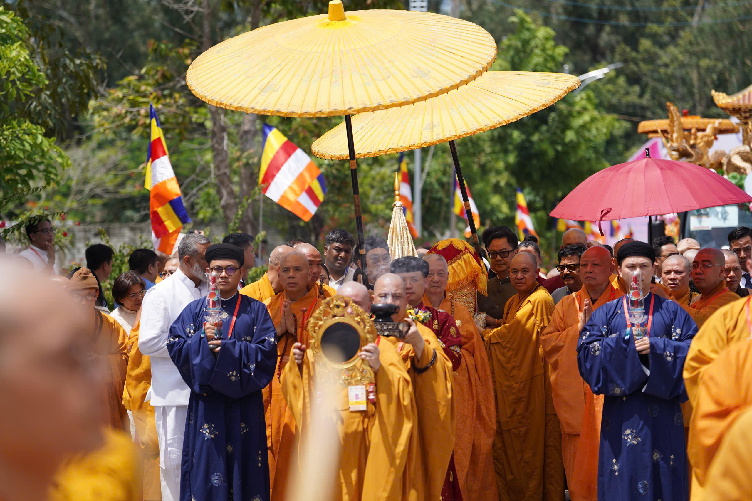 Lễ cung đón có sự hiện diện của Đức Pháp chủ Giáo hội Phật giáo Việt Nam - Đại lão Hòa thượng Thích Trí Quảng; Trưởng lão Hòa thượng Thích Thiện Nhơn - Chủ tịch Hội đồng Trị sự; Hòa thượng Thích Bảo Nghiêm; Thượng tọa Thích Đức Thiện - Phó Chủ tịch kiêm Tổng Thư ký Hội đồng Trị sự; cùng Bộ trưởng Bộ Dân tộc - Tôn giáo Đào Ngọc Dung.