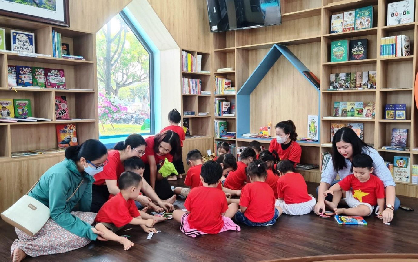 Cô trò cùng chơi, học tập tại thư viện số Tam Kỳ. |