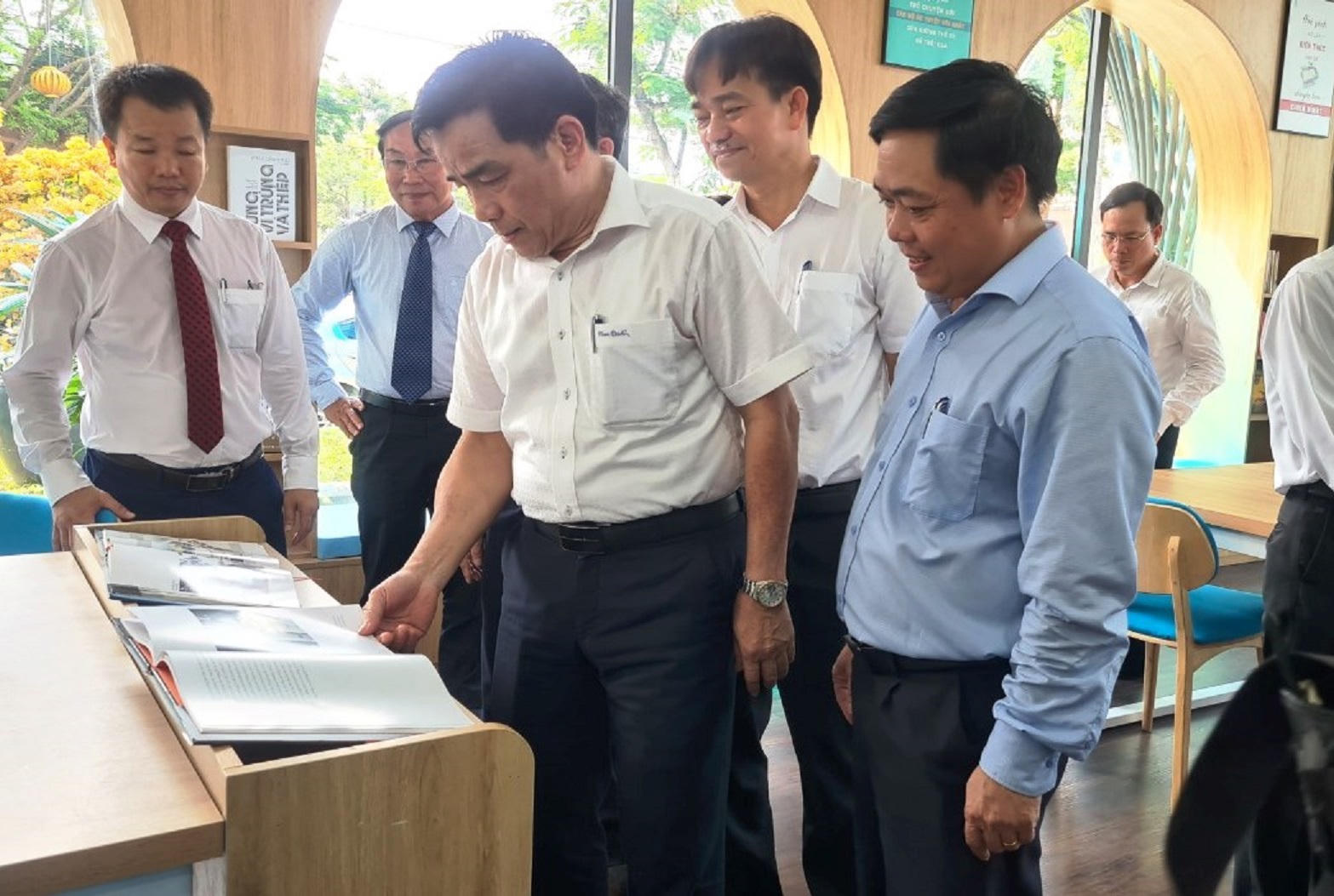 Phó Bí Thư tỉnh uỷ Quảng Nam Lê Văn Dũng (ở giữa) tham quan thư viện số cộng đồng Tam Kỳ. |