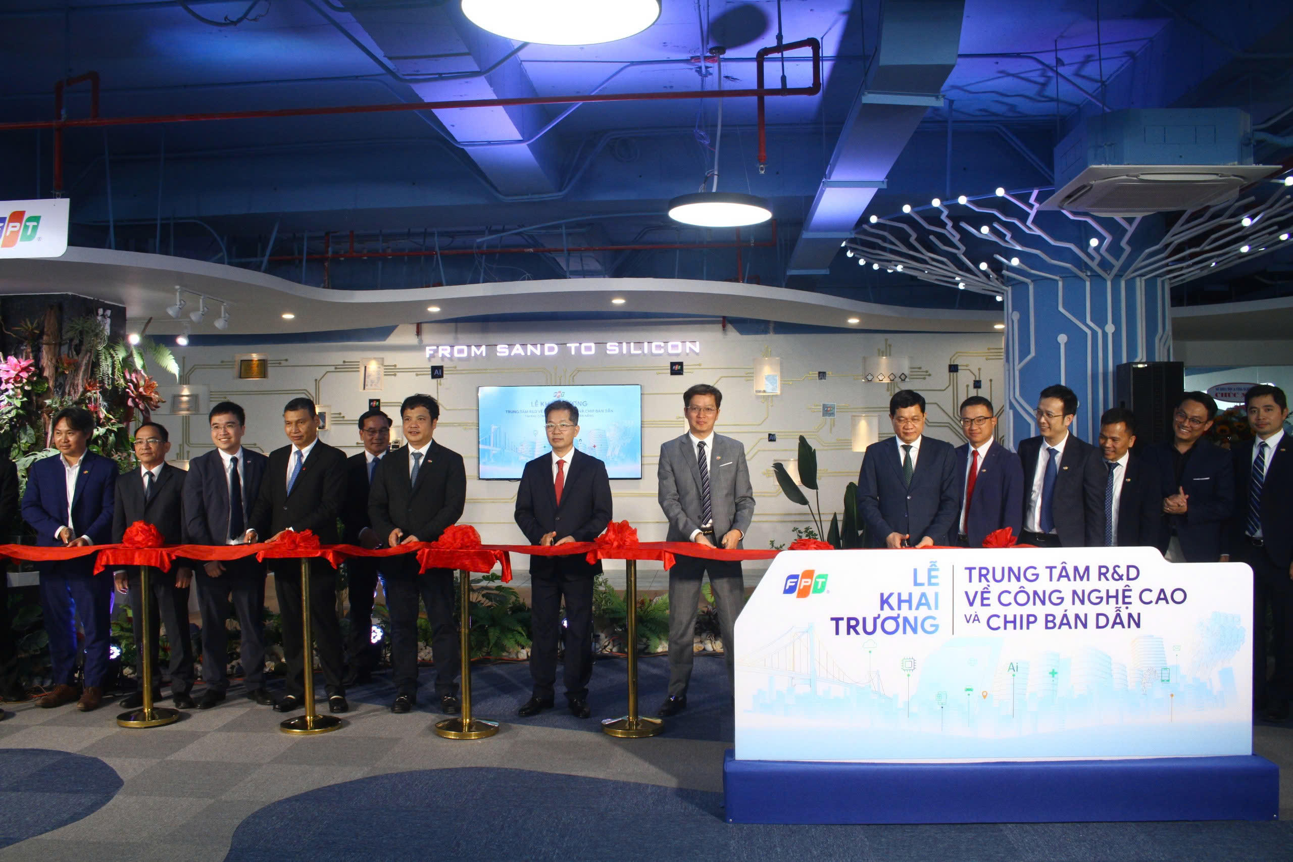 Lãnh đạo TP Đà Nẵng và tập đoàn FPT cắt băng khai trương Trung tâm R&D về công nghệ cao và chip bán dẫn. |