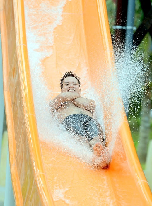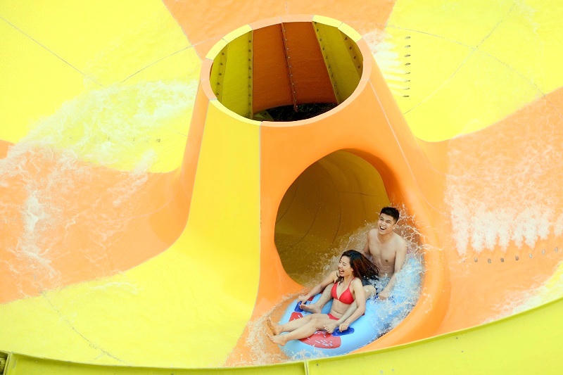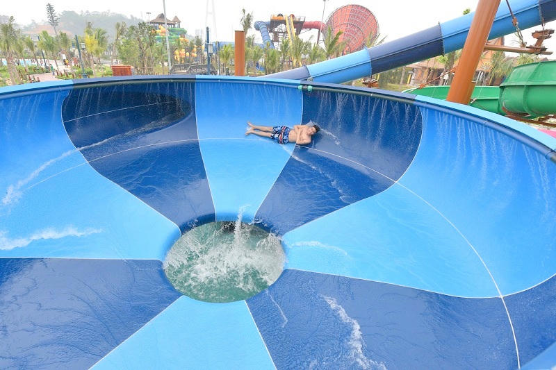 Điểm nhấn tại công viên nước Typhoon Water Park là các trò chơi mạo hiểm dành cho những người đam mê thử thách. Và để có được những trải nghiệm tuyệt vời, “bùng nổ” nhất, để thỏa sức khám phá giới hạn của bản thân, hãy thử cảm giác “rơi tự do” từ độ cao hơn 20m trên những đường trượt xoắn ốc siêu tốc, quăng mình xoay tròn 360 độ trong trò chơi “Cơn bão nhiệt đới”.