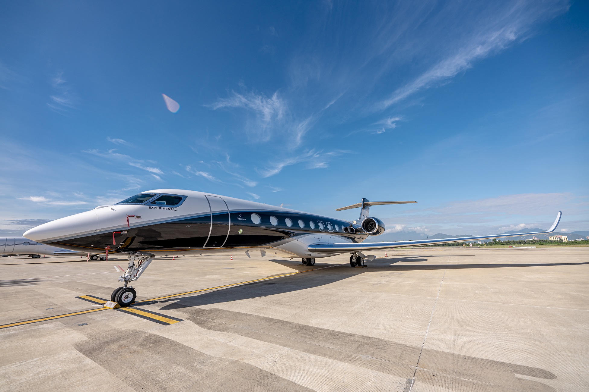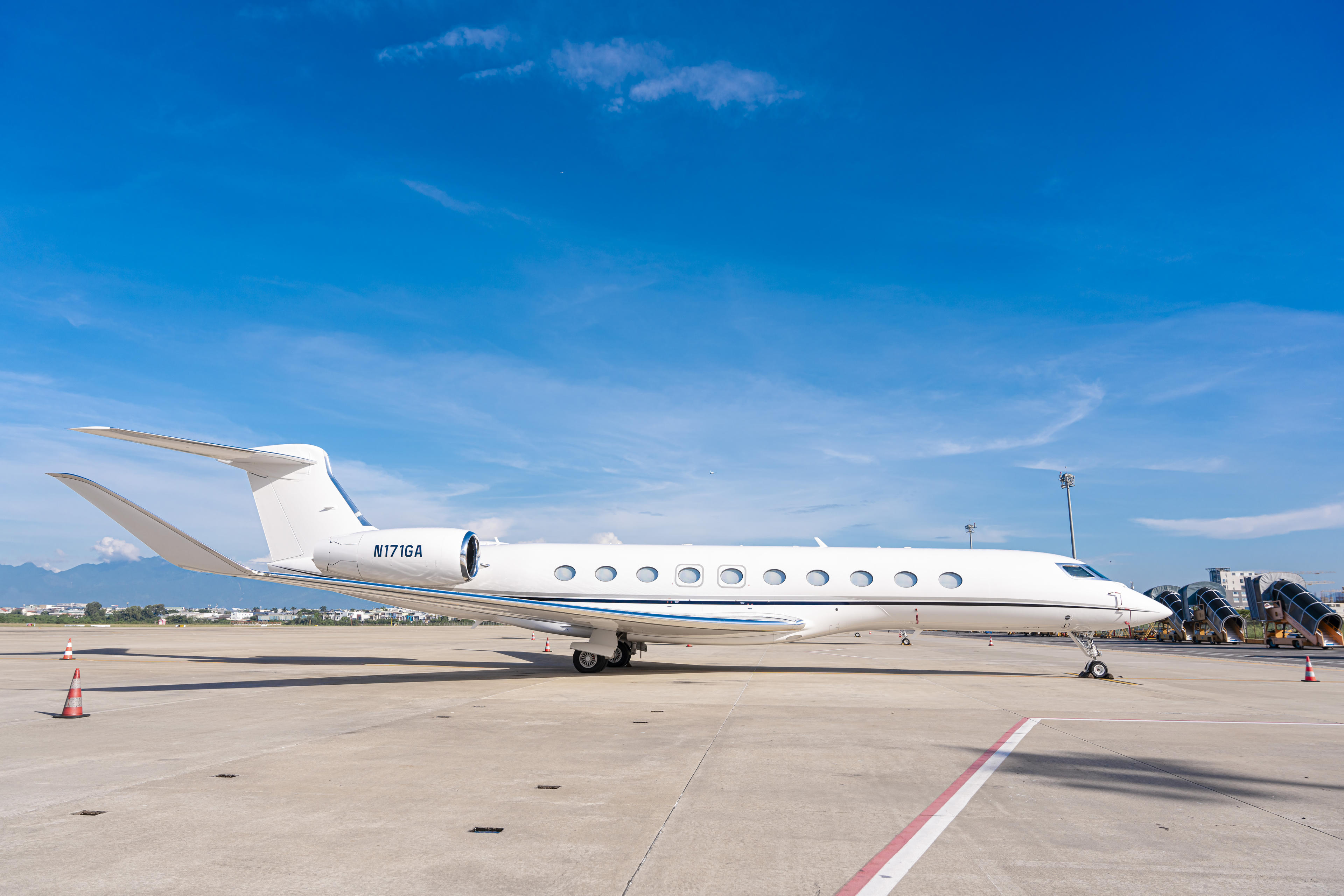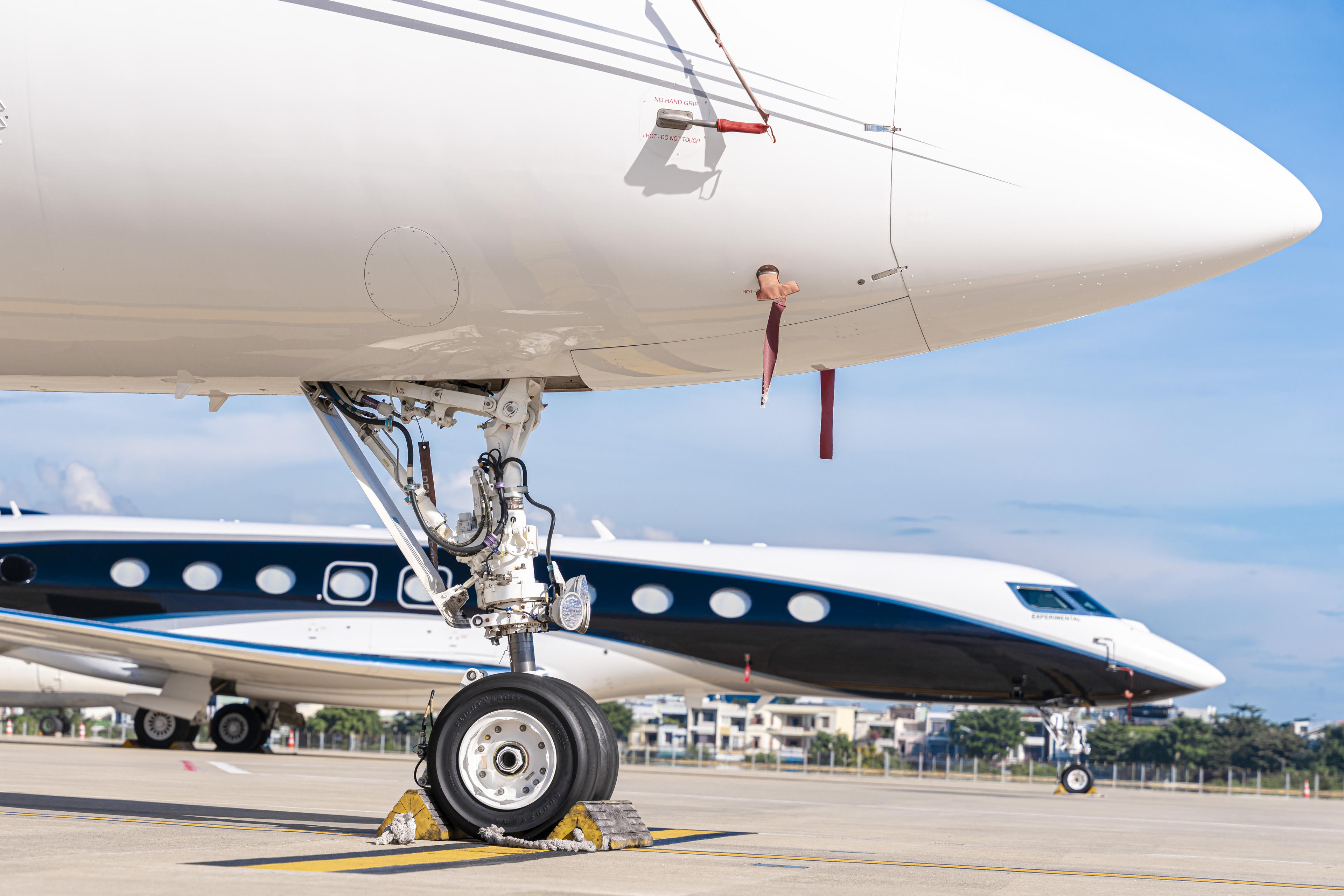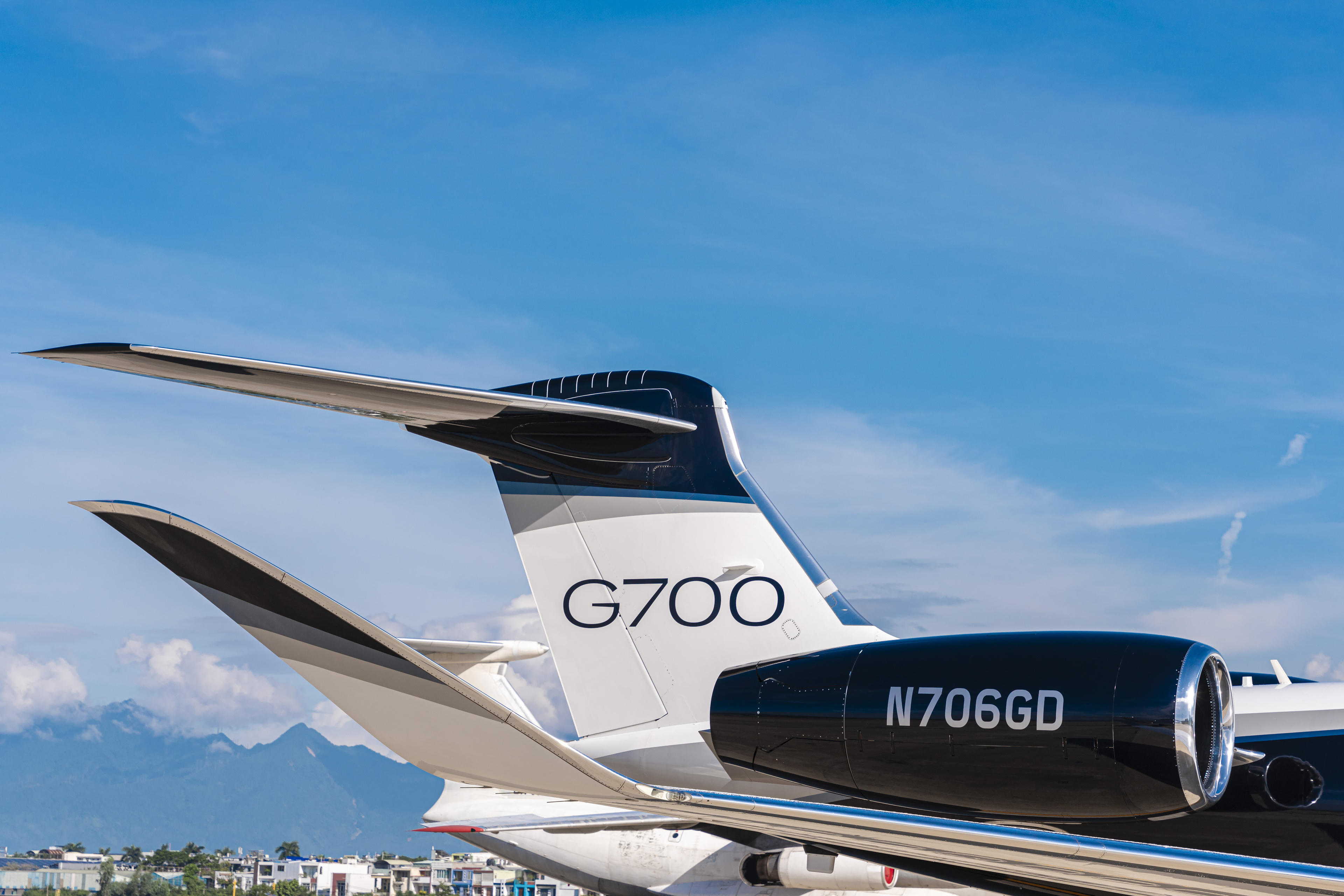 Từ xa nhìn lại, có thể nhìn thấy rõ các số hiệu quen thuộc của các dòng máy bay làm nên danh tiếng của Gulfstream ở phần gần đuôi của tàu bay, gồm 1 tàu bay G600, 1 tàu bay G500, 1 tàu bay G650ER và 2 tàu bay G700.