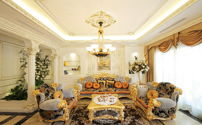 Bước qua cánh cửa chính, đón gia chủ về nhà sau một ngày dài làm việc, là một không gian kiến trúc Pháp pha lẫn phong cách kiến trúc Hy Lạp của phòng khách, màu sắc nội thất đầy ngẫu hứng của bộ bàn ghế sofa với gam màu vàng pha lẫn màu đen, xám bạc với đường hoa văn thêu tinh tế trên chất liệu nhung tuyết, pha lụa mềm mại, cùng với rèm cửađặc trưngcủa Tây Ban Nha, kết hợp hài hòa vớitừngchi tiết đường nét sắc cạnh của cột trụ, đường gờ phào vuông vắn và hơn thế, khi quý vị tận mắt chứng kiếnnữ thần Hy Lạp với bình nước trên vai,đứng giữa vườn hồngcó khi mong manh trong sương sớm ban mai, có lúc căng tràn sức sống trong ánh nắng hè rực rỡ, có khi đẹp dịu dàng bí ẩn dưới ánh đèn buổi tối,khu vườn dù nhỏ, nhưng là một bản giao hưởng thiên nhiên gần gũi, là chốn tĩnh tâm, giúp cho tâm hồn mỗi người tìm lại sự nhẹ nhàng, thư thái khi ngắm nhìn những sắc hoa rạng rỡ rung rinh trong gió, tiếng lá cây khe khẽ lay động xào xạc và hít căng lồng ngực mùi hương hoa cỏ thanh mát, ngọt ngào.