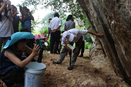 Các nhà khoa học cũng lý giải rằng, lẽ ra, hình vẽ này sẽ không lúc ẩn lúc hiện, nếu như không có sự tác động của con người. Sở dĩ, hình vẽ rơi vào hiện tượng “ma quỷ” là vì người dân địa phương từng dựng lò nung vôi ở sát vách đá.