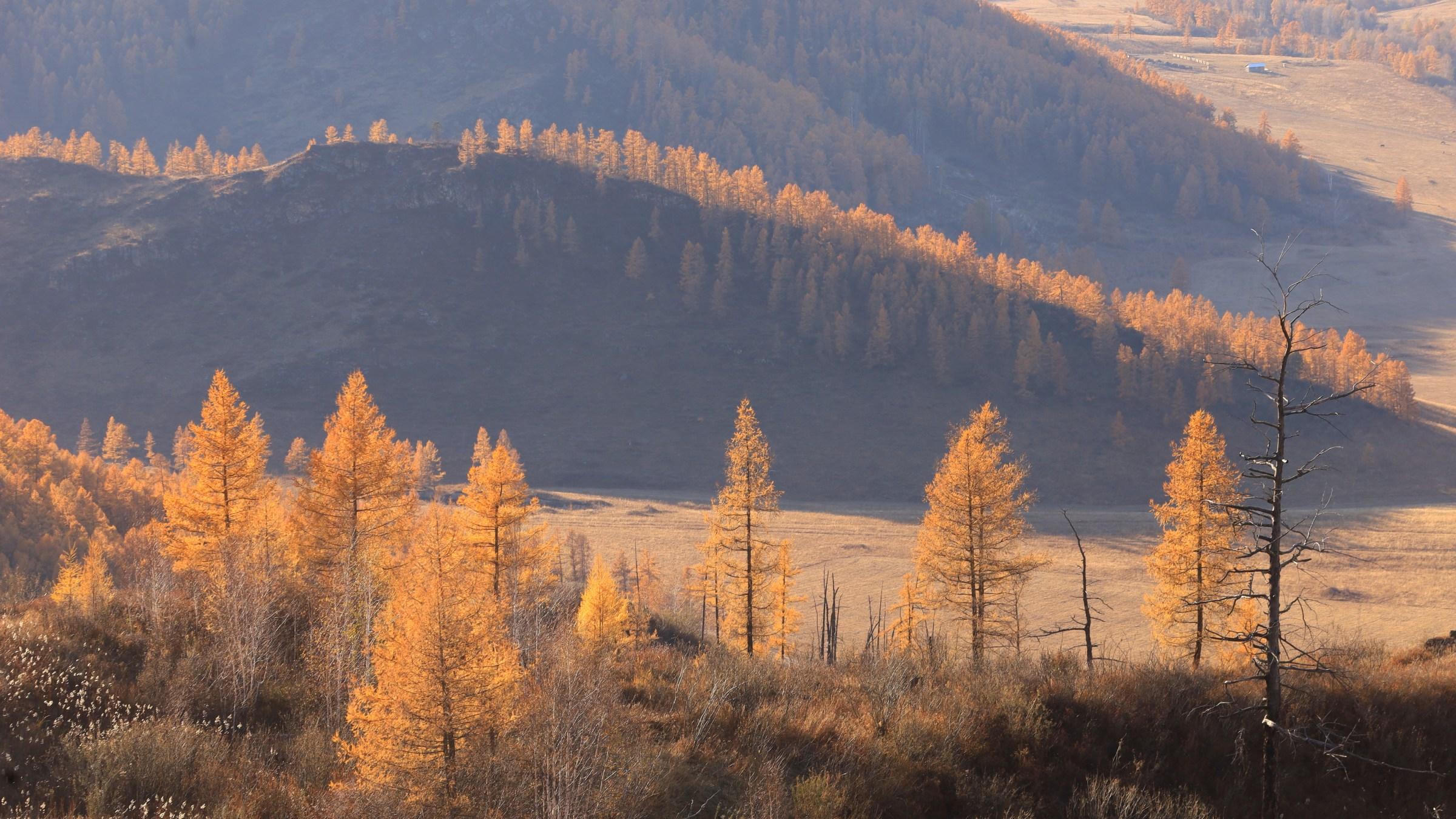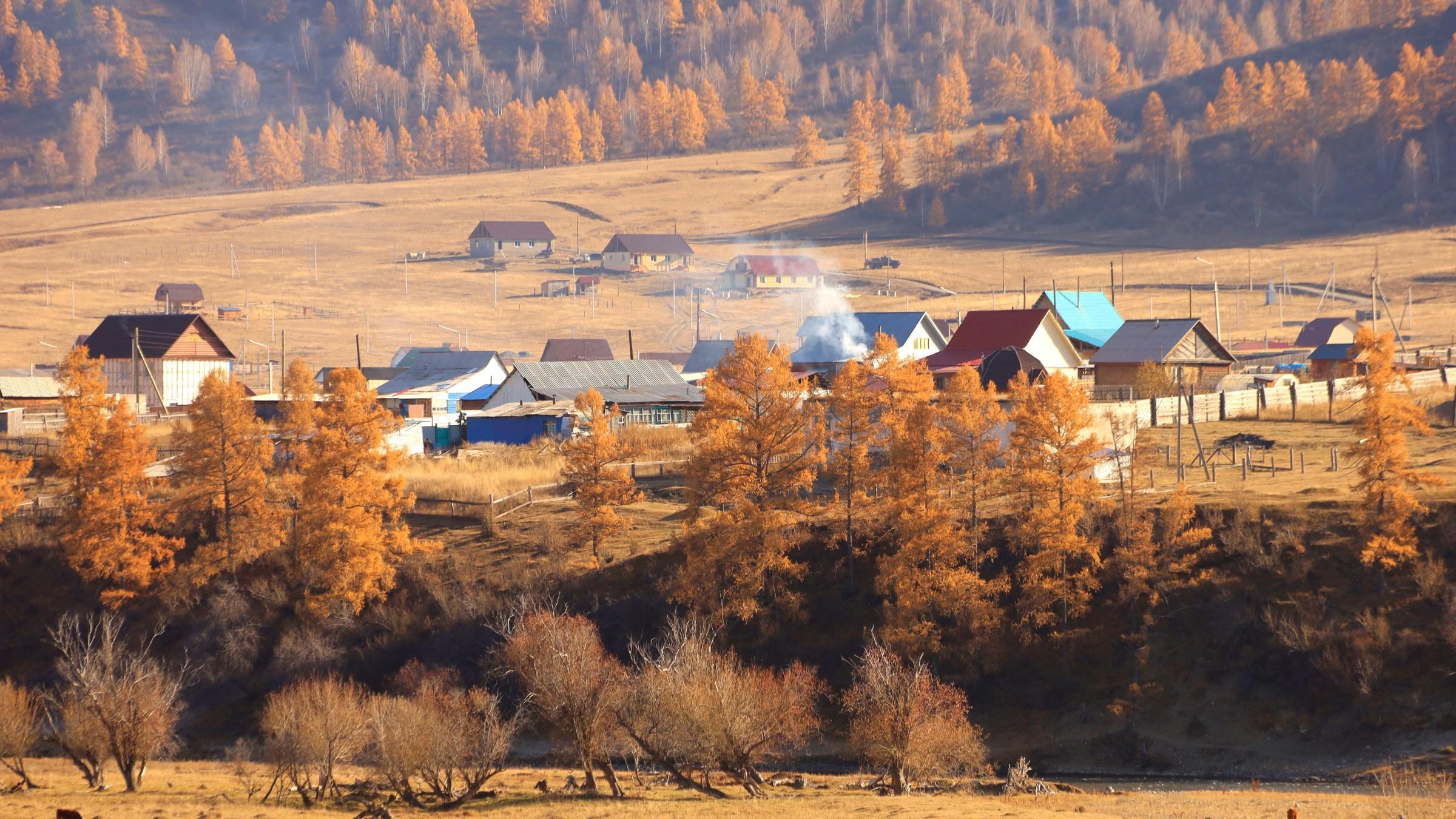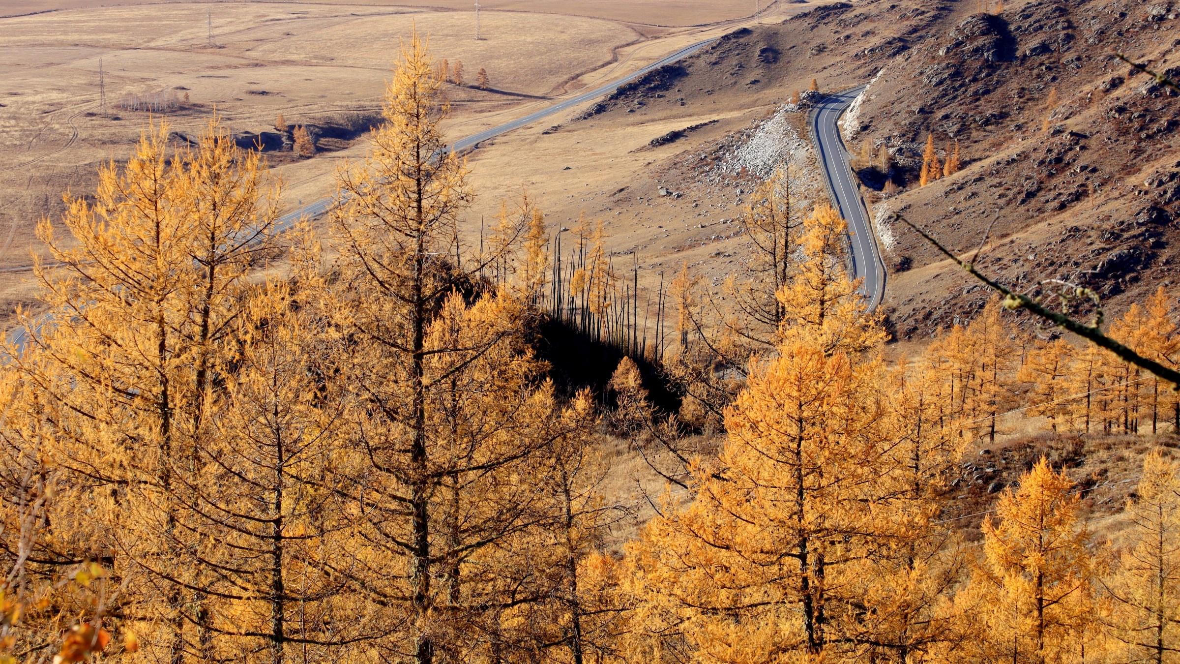 Bức tranh mùa thu vàng Altai ở hai bên đường Chuisky