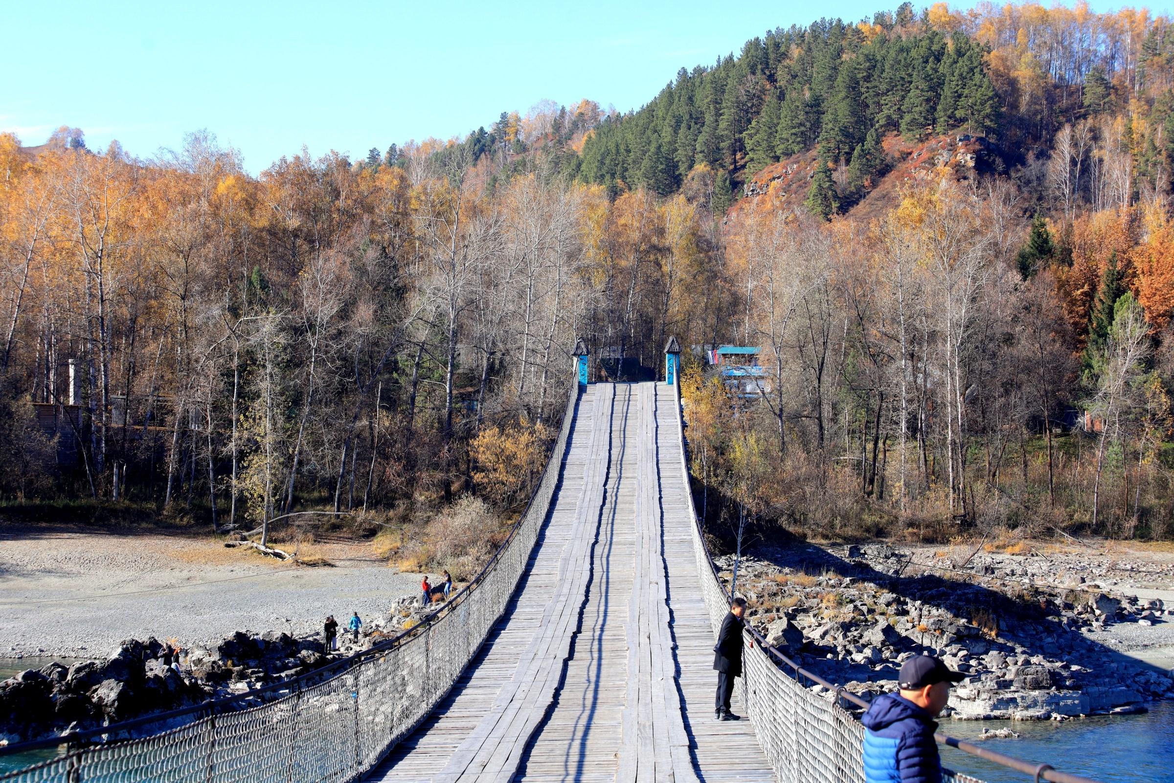 Cây cầu treo đi bộ Aiskyi bắc qua sông Katun được xây dựng từ năm 1979, là địa điểm để du khách ngắm cảnh đẹp hai bên bờ sông.