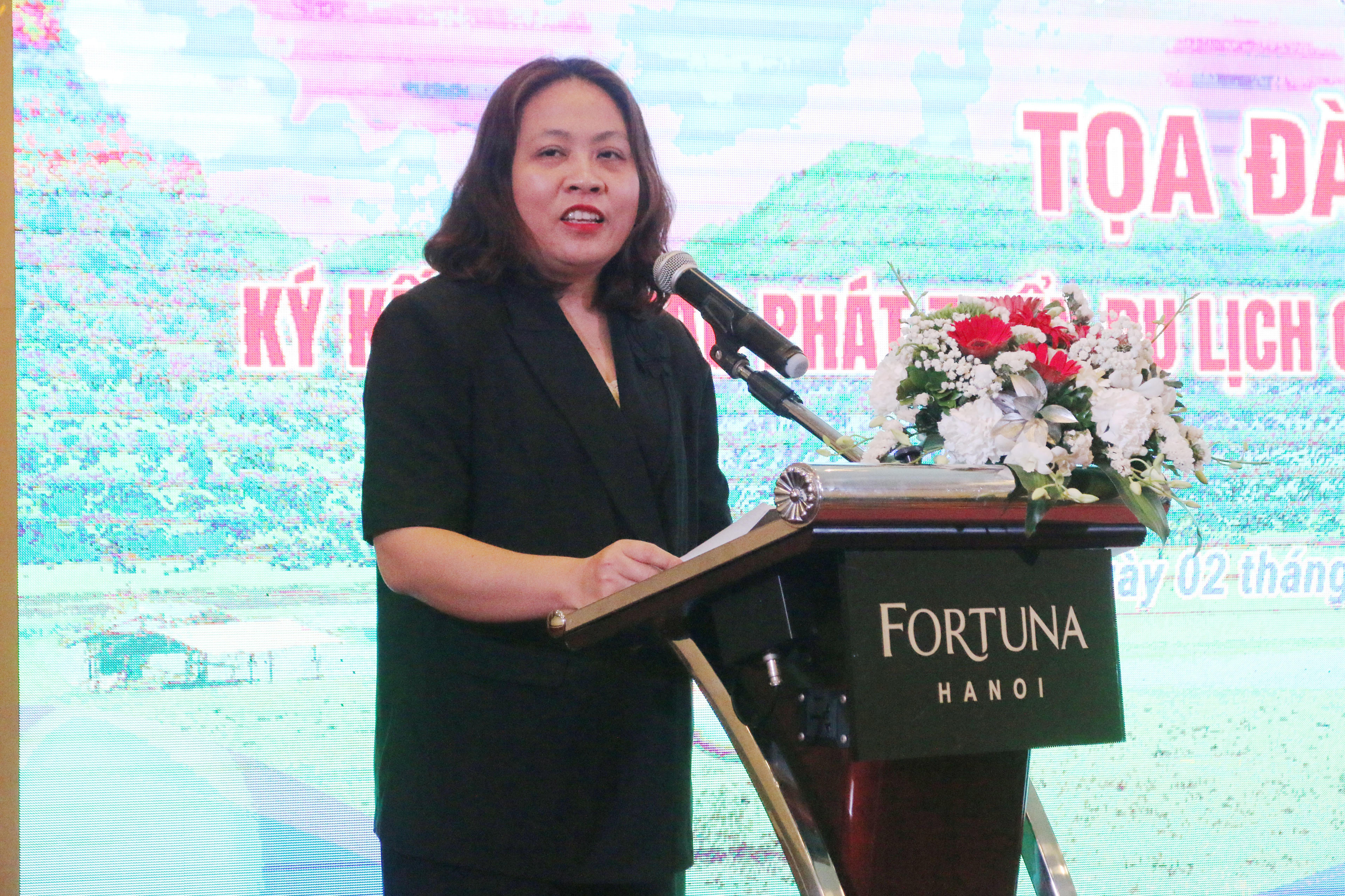Bà Hương lấy dẫn chứng vai trò quan trọng trong phát triển du lịch dựa trên các giá trị của công viên địa chất, điển hình như Công viên địa chất toàn cầu Cao nguyên đá Đồng Văn. Năm 2010, Hà Giang được UNESCO công nhận Công viên địa chất toàn cầu thì chỉ sau 1 năm số lượng khách du lịch đến với Hà Giang (năm 2011) đã đạt 330.000 lượt khách. Bên cạnh đó, doanh thu từ du lịch đạt khoảng 337 tỷ đồng và đến năm 2023 khách du lịch đến với Hà Giang đã đạt trên 3 triệu lượt khách với doanh thu từ du lịch đạt khoảng trên 7,1 nghìn tỷ đồng, đóng góp 14,6% GDP của Hà Giang.