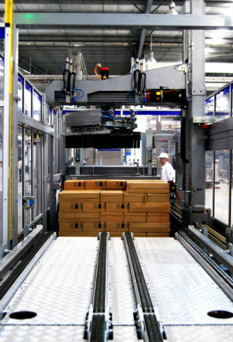 Tại nhà máy có các robot LGV vận hành tự động sẽ chuyển pallet thành phẩm đến khu vực kho thông minh. Ngoài ra, LGV còn vận chuyển các cuộn bao bì và vật liệu bao gói đến các máy một cách tự động. Hệ thống robot LGV có thể tự sạc pin mà không cần sự can thiệp của con người.