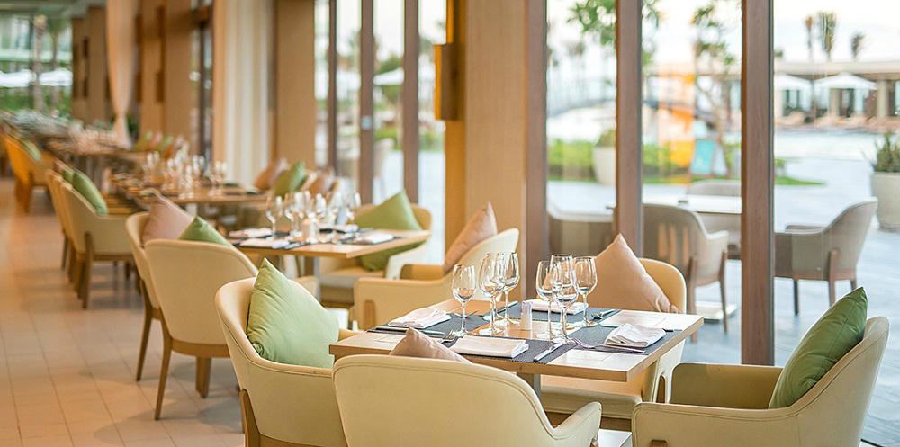 Nhà hàng Fish Cá tọa lạc bên bể bơi nước mặn lớn nhất Việt Nam, có sức chứa hơn 400 khách, được thiết kế hết sức tinh tế, hài hòa. Màu sắc chủ đạo của nhà hàng là xanh lá và trắng ngà tạo nên sự nhẹ nhàng, thanh thoát. Hệ thống chiếu sáng kết hợp với những ô cửa sổ trần sàn đã giúp cho nhà hàng luôn thoáng đãng và chan hòa ánh sáng.