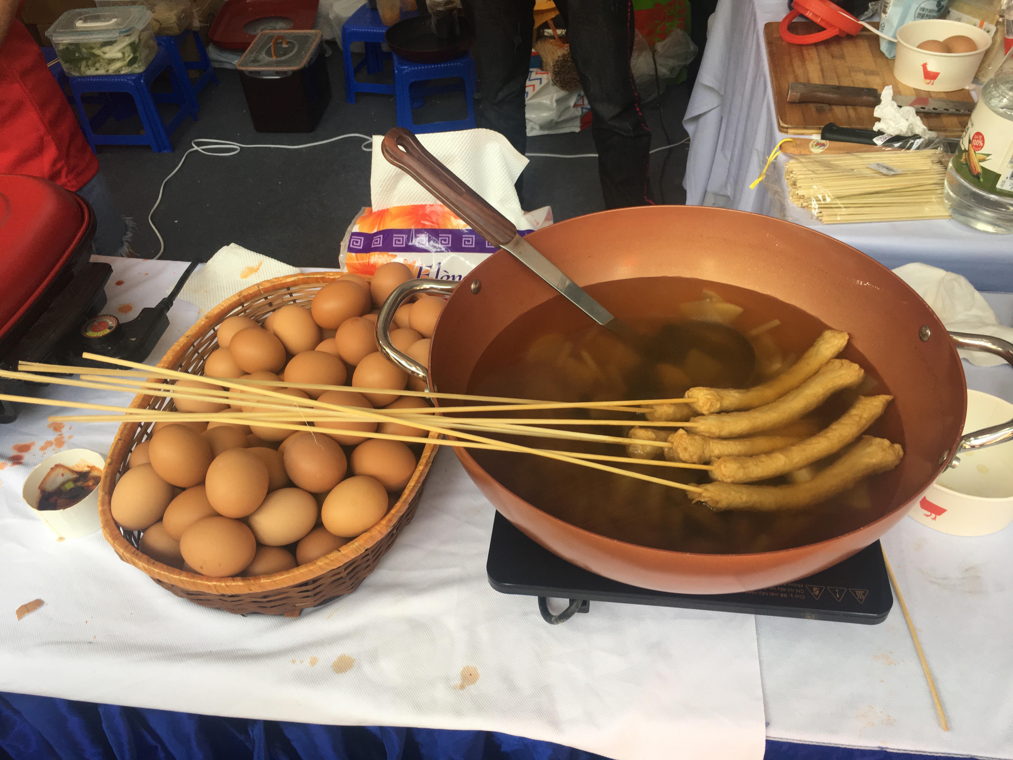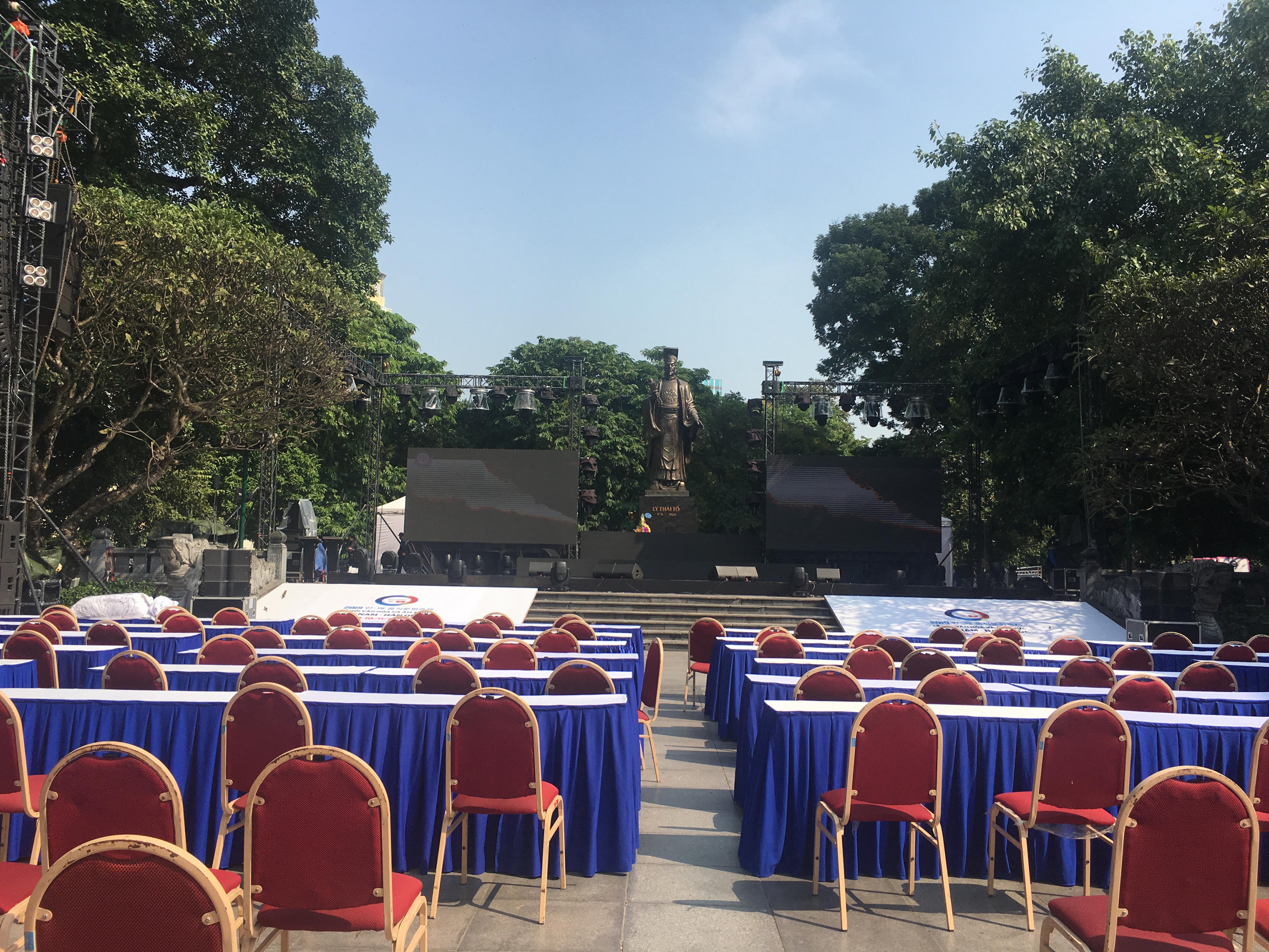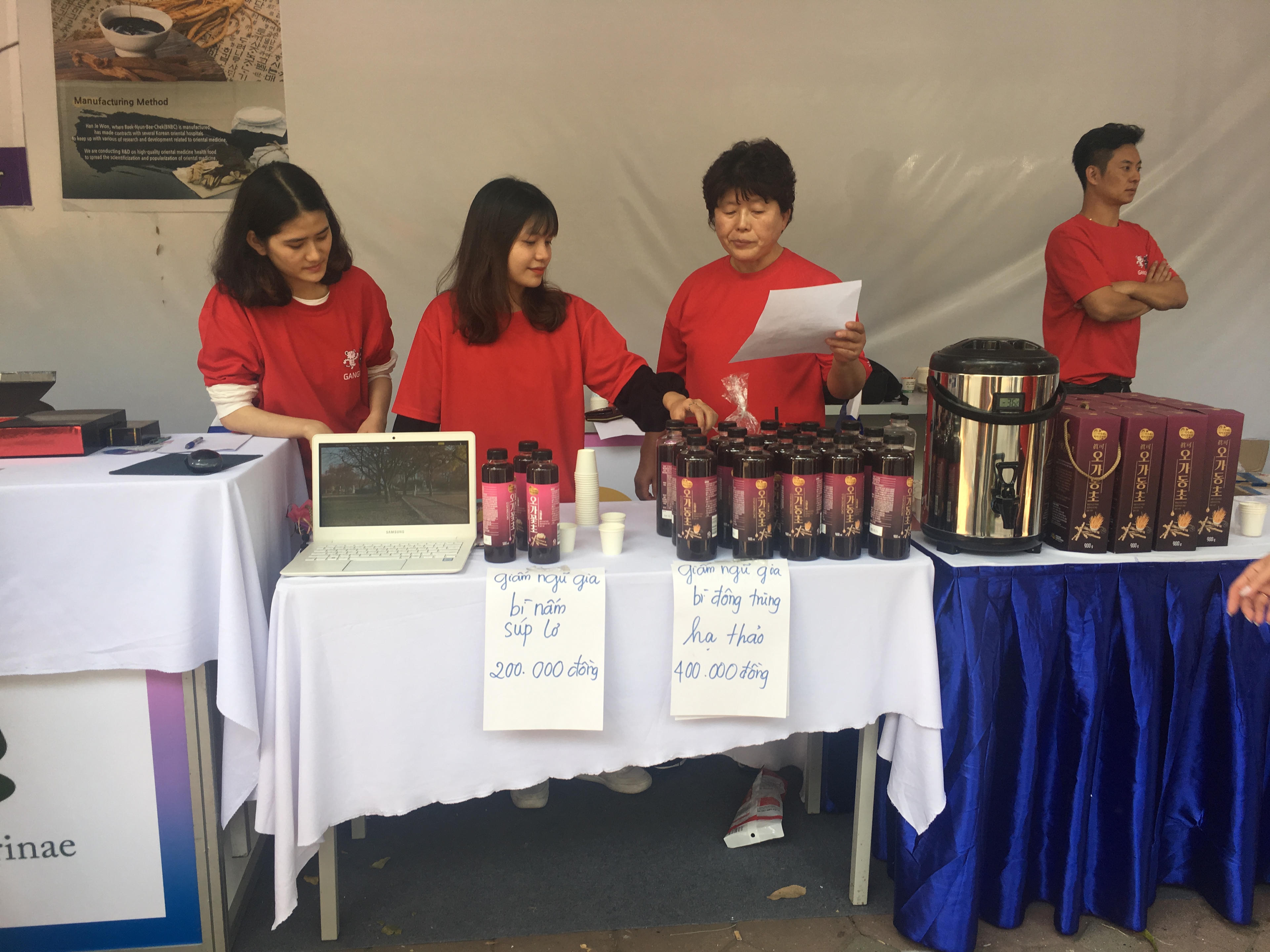 Hôm nay là ngày khởi động đầu tiên trong chuỗi 3 ngày cùa sự kiện từ ngày 8-10/11. Từ 10 giờ sáng, các quầy hàng đã chuẩn bị xong xuôi cho khách thăm quan và mua sắm, sân khấu và ghế ngồi cũng đã được bài trí cho chương trình văn nghệ buổi tối.