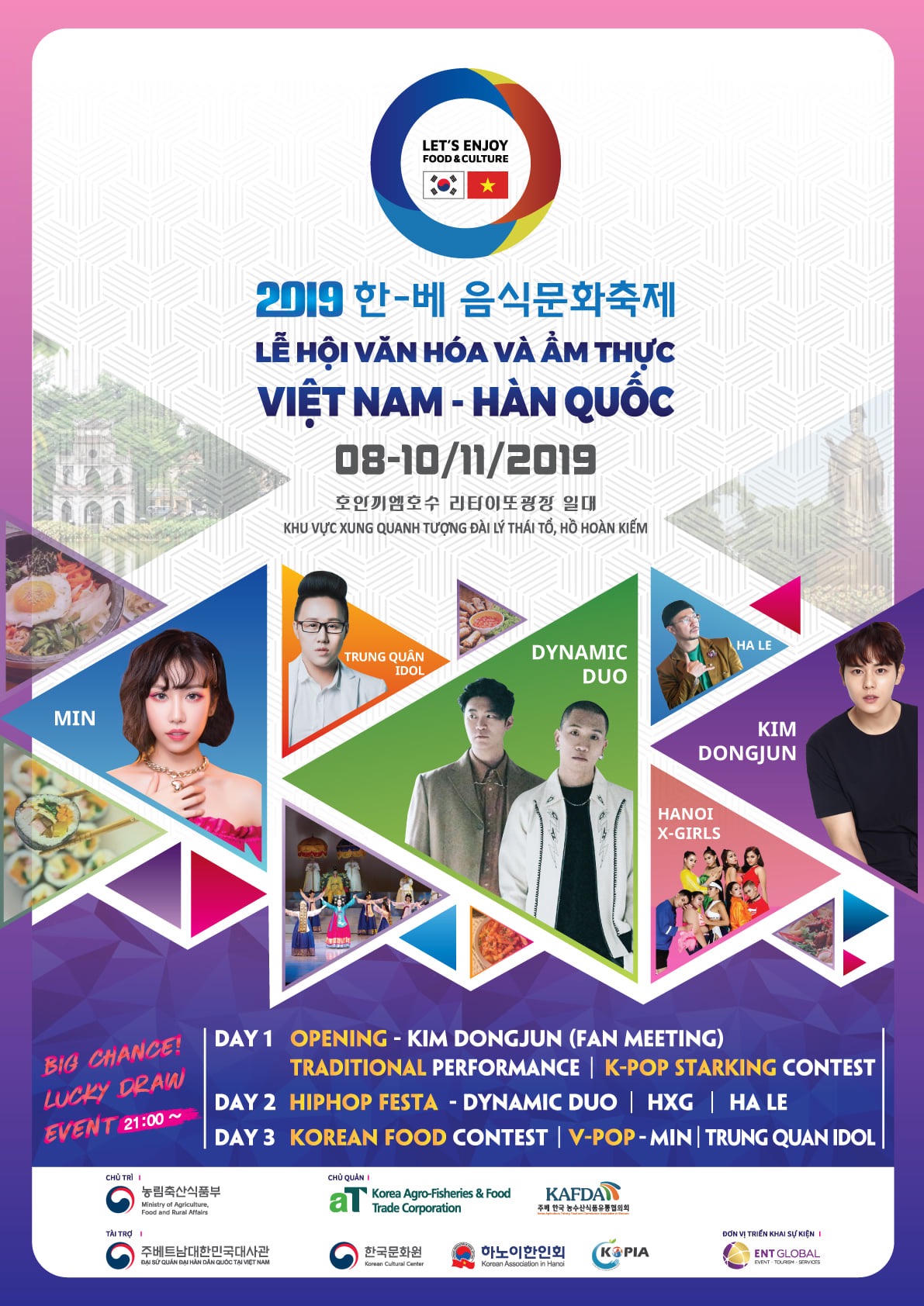 Lễ hội văn hóa ẩm thực Việt - Hàn 2019 đánh dấu năm thứ 11 lễ hội này được tổ chức tại Việt Nam và cũng là lần đầu tiên sự kiện được tổ chức tại khu vực trung tâm của thủ đô: Quảng trường Lý Thái Tổ, quận Hoàn Kiếm.