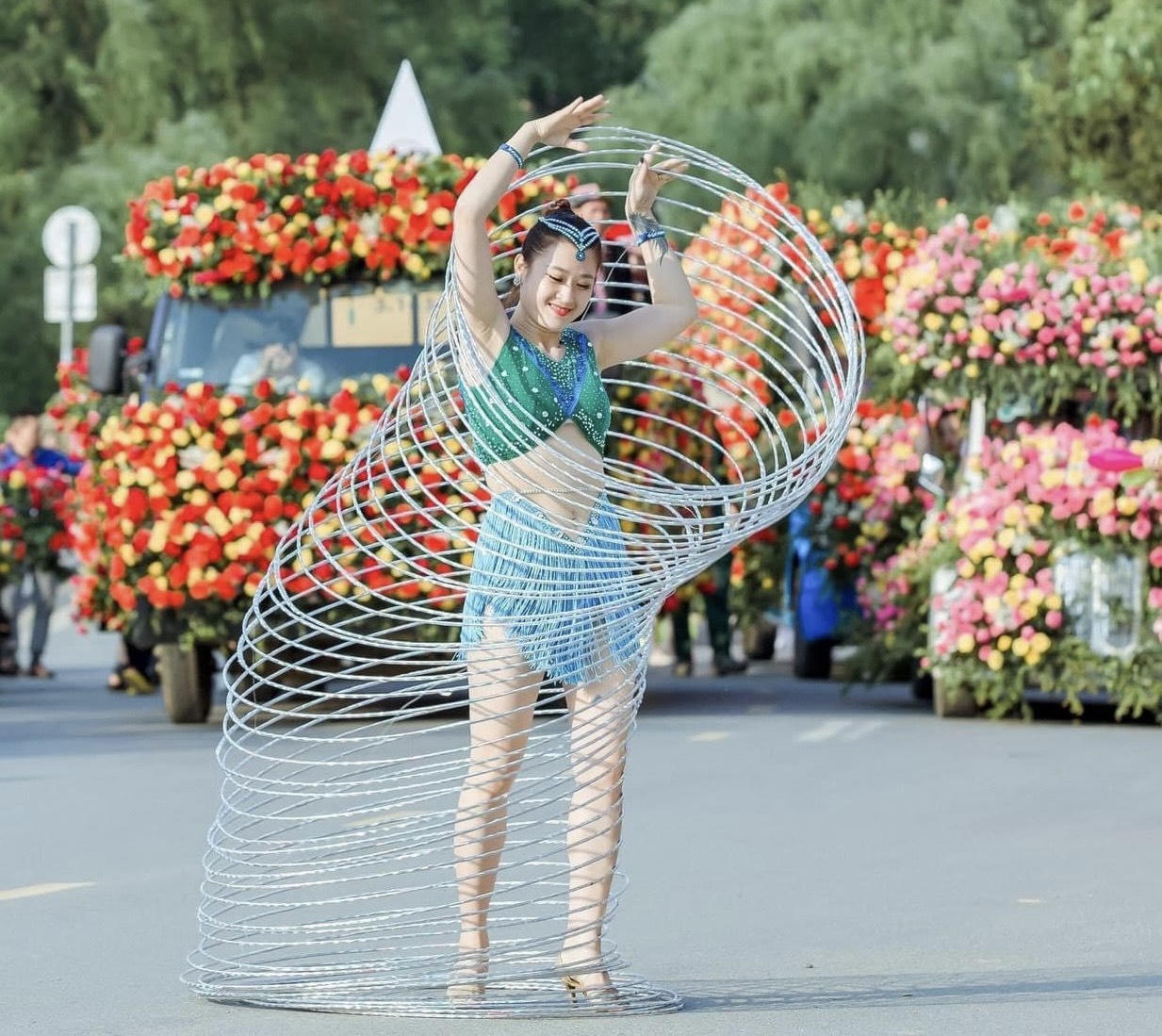 Những màn biểu diễn đường phố và chiếc xe diễu hành hoa tại Sa Pa dịp 30/4. |