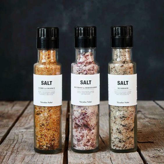 Đó có thể là “Flor de Sal d'Es Trenc” của Tây Ban Nha mang hương thơm pha trộn giữa cỏ hương thảo, lá kinh giới và cỏ xạ hương để gia tăng hương vị khi chế biến thịt và salad. Hoặc cũng có thể là loại muối tre từ Molokai thuộc Hawaii; muối hun khói theo phương pháp làm muối của người Viking cổ xưa từ Đan Mạch.