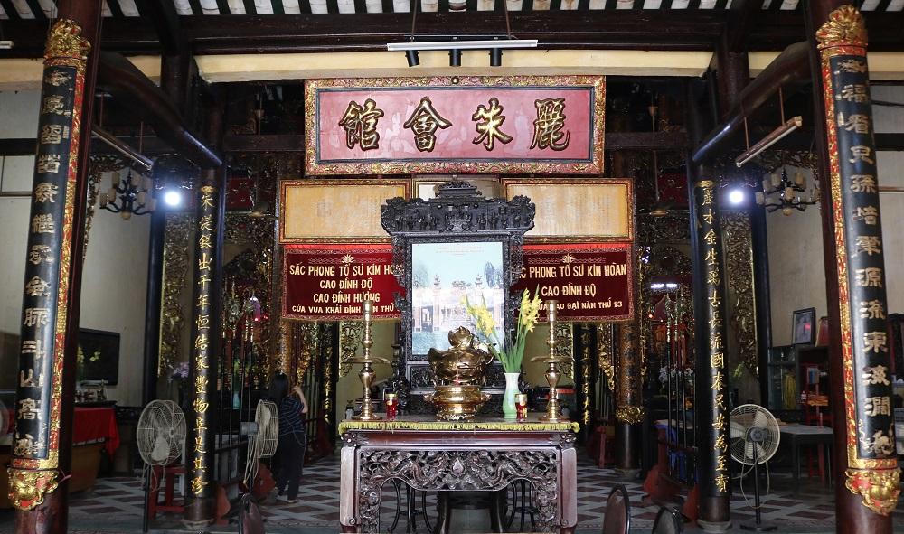 Chánh điện với bức Hoành phi “Lệ Châu hội quán”. |
