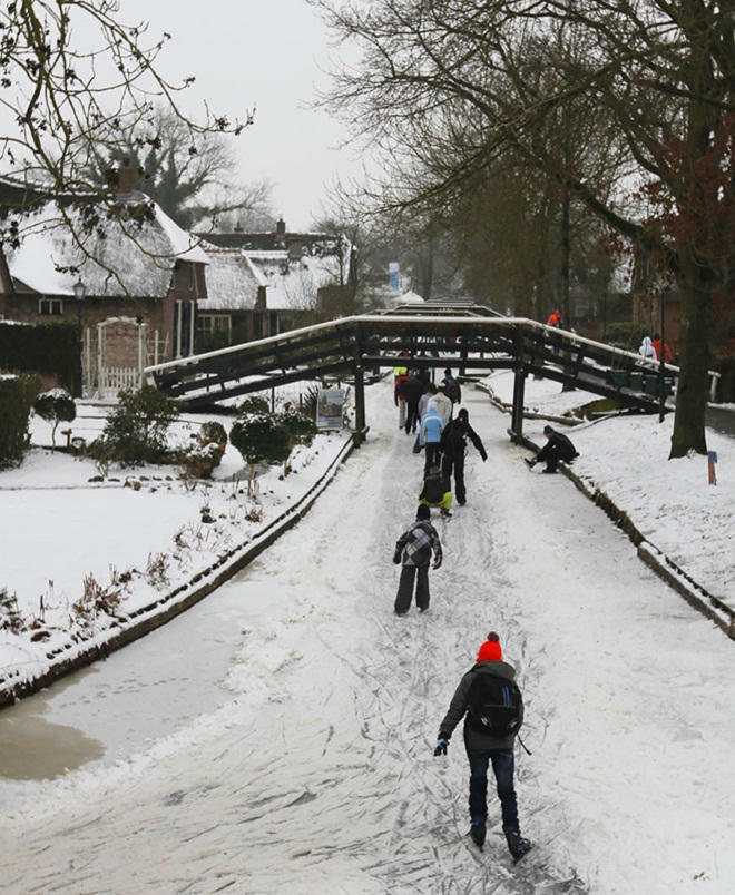 Khi mùa đông đến, những con kênh lại hoá thành đường trượt băng hoàn hảo.