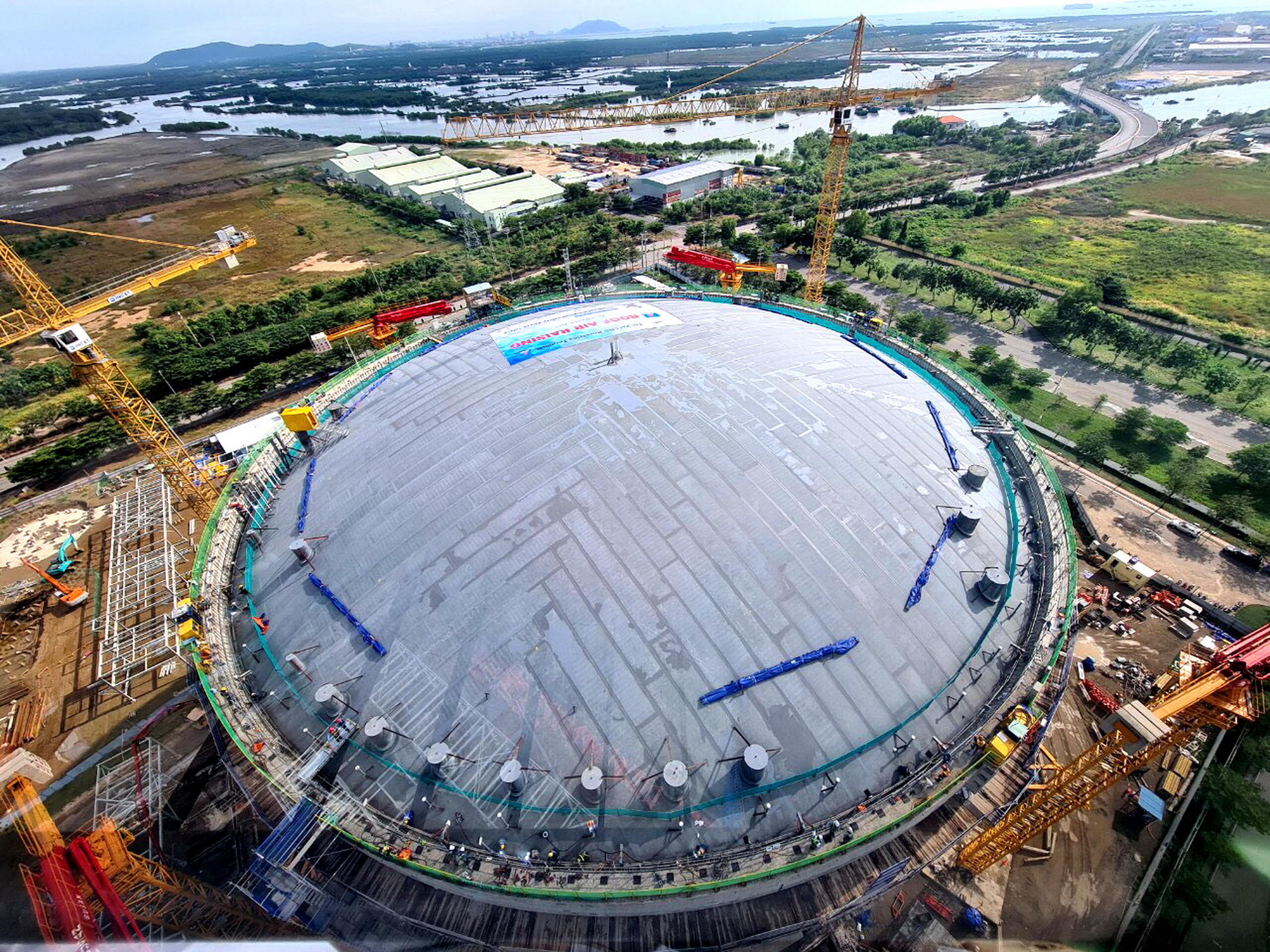 Mái bồn là kết cấu thép có trọng lượng hơn 900 tấn, được thi công trước ở đáy bồn và dùng kỹ thuật “air lifting” nâng mái lên đỉnh bồn, sau đó hàn liên kết với thành bồn. Bồn chứa LNG trong dự án đáp ứng các tiêu chuẩn khắt khe như API 625, API 620 App Q, ACI 736M-11. Đây là các tiêu chuẩn quốc tế đảm bảo an toàn và chất lượng trong việc xây dựng và vận hành bồn chứa LNG.