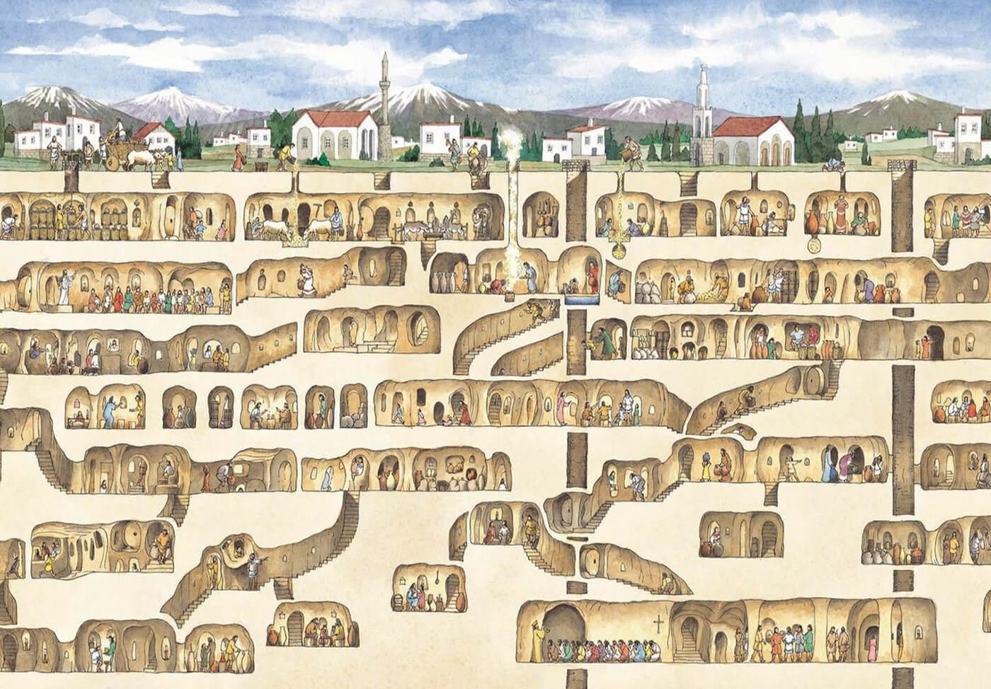 Vùng Cappadocia thuộc Thổ Nhĩ Kỳ từ lâu đã trở nên nổi tiếng với hệ thống thành phố dưới lòng đất, một hệ thống các đường hầm và tâng ngầm vô cùng phức tạp. Derinkuyu là một thành phố ngầm lớn nhất. Thành phố được phát hiện vào năm 1963, bao gồm bảy tầng hầm và được cho rằng có tới hàng ngàn khu nhà khác nhau, với các con đường chằng chịt đan xen nhau nơi này còn được xem như một mê cung dưới lòng đất.