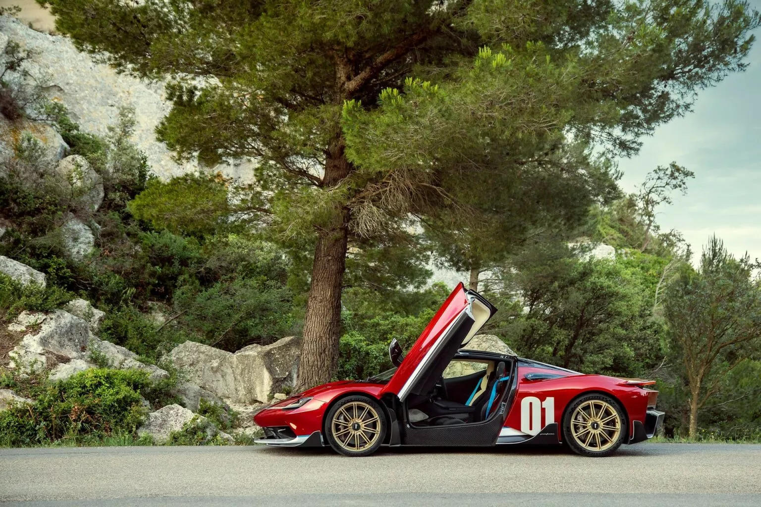 Số '01' được sơn màu Bianco Sestriere phía sau thân xe. |