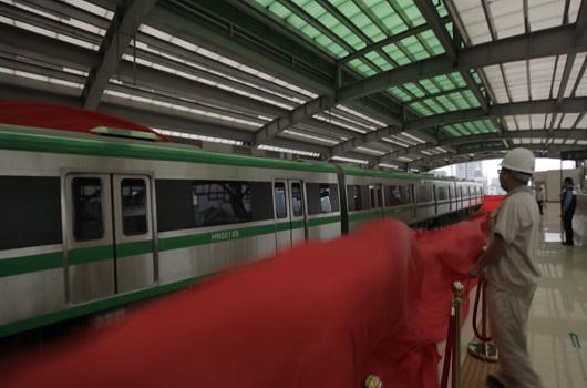 | Gần 8h sáng nay, Thứ trưởng Bộ GTVT Nguyễn Hồng Trường chính thức mở bạt đoàn tàu tại nhà ga La Khê (Hà Đông) trong không khí phấn khởi của đại diện cơ quan chức năng và đông đảo phóng viên báo chí. |