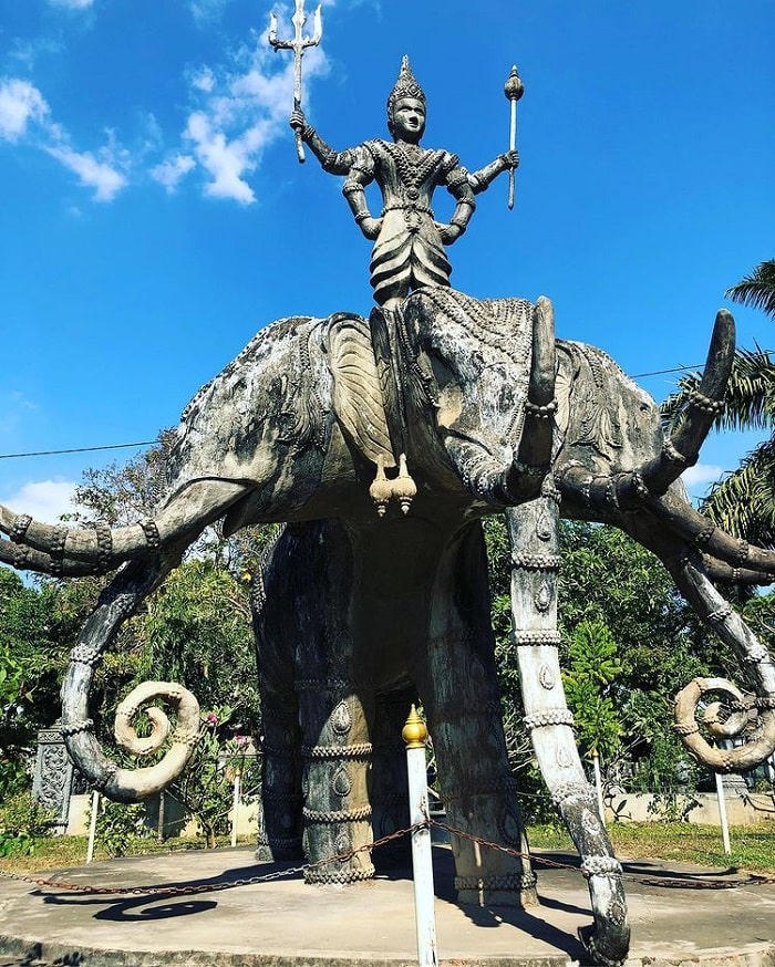 Tượng thần Indra là vị thần tối cao của Hindu giáo, trên lưng lúc nào cũng cưỡi một ngọn voi có 3 đầu. Vị thần có 12 khuôn mặt và nhiều tay, mỗi tay lại cầm những đồ vật khác nhau. Vị thần có 4 tay cưỡi trên một con ngựa. Tất cả đều được điêu khắc với kích thước khổng lồ.