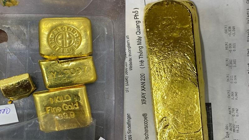 Vàng được thu giữ khi khám xét tại nhà các đối tượng. |