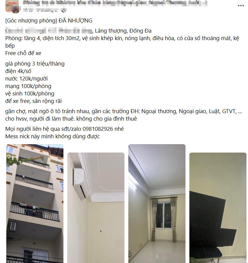 Thuê trọ tại khu vực phố Lương Thế Vinh (Thanh Xuân) mới được 1 tháng nhưng Nguyễn Thanh Thủy – sinh viên năm 4, Trường Đại học Hà Nội lại phải vội vàng đăng tin nhượng phòng vì chủ trọ thông báo tăng giá phòng thêm 300.000 đồng/tháng (gần 10%), chưa bao gồm tiền điện nước và các chi phí dịch khác.