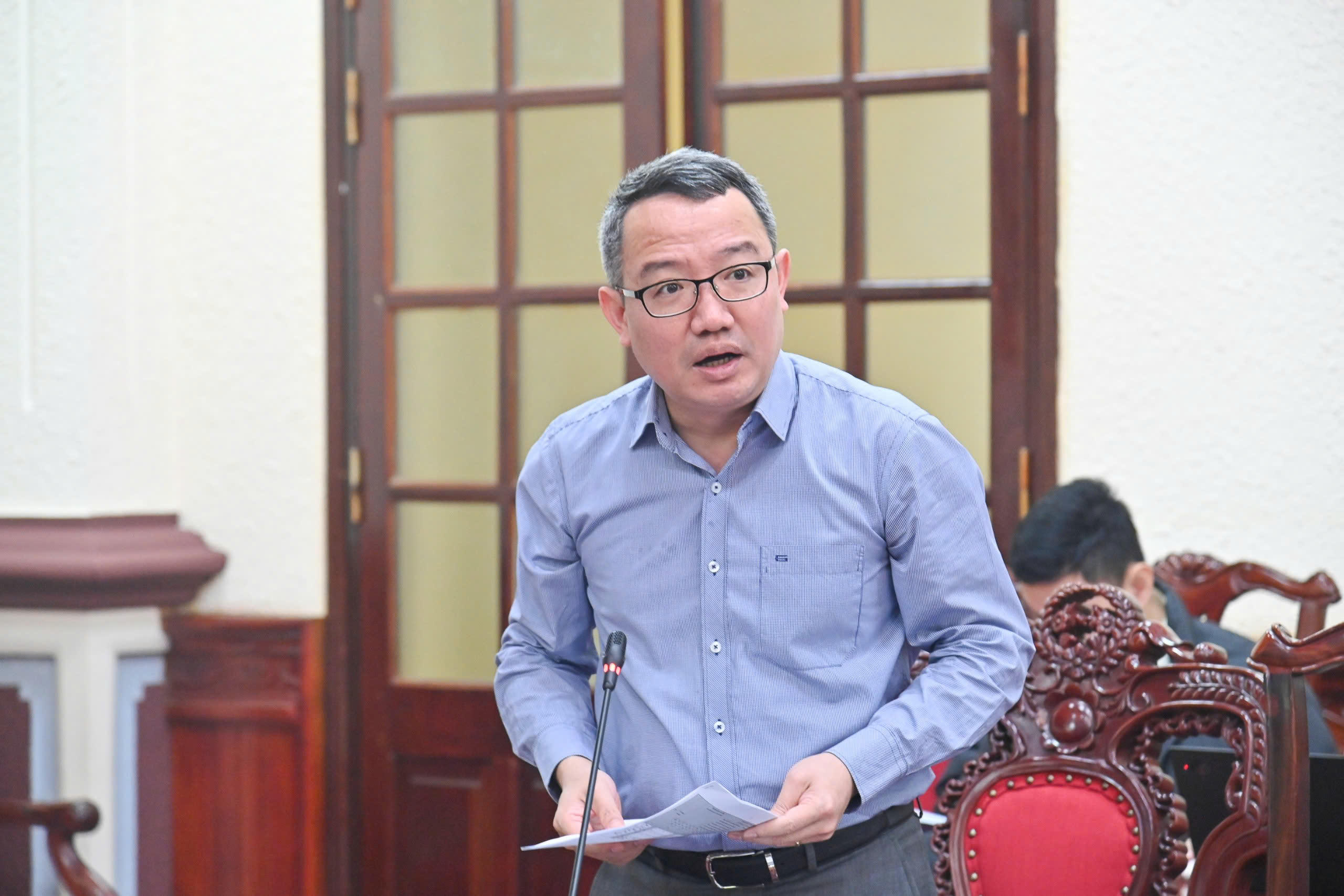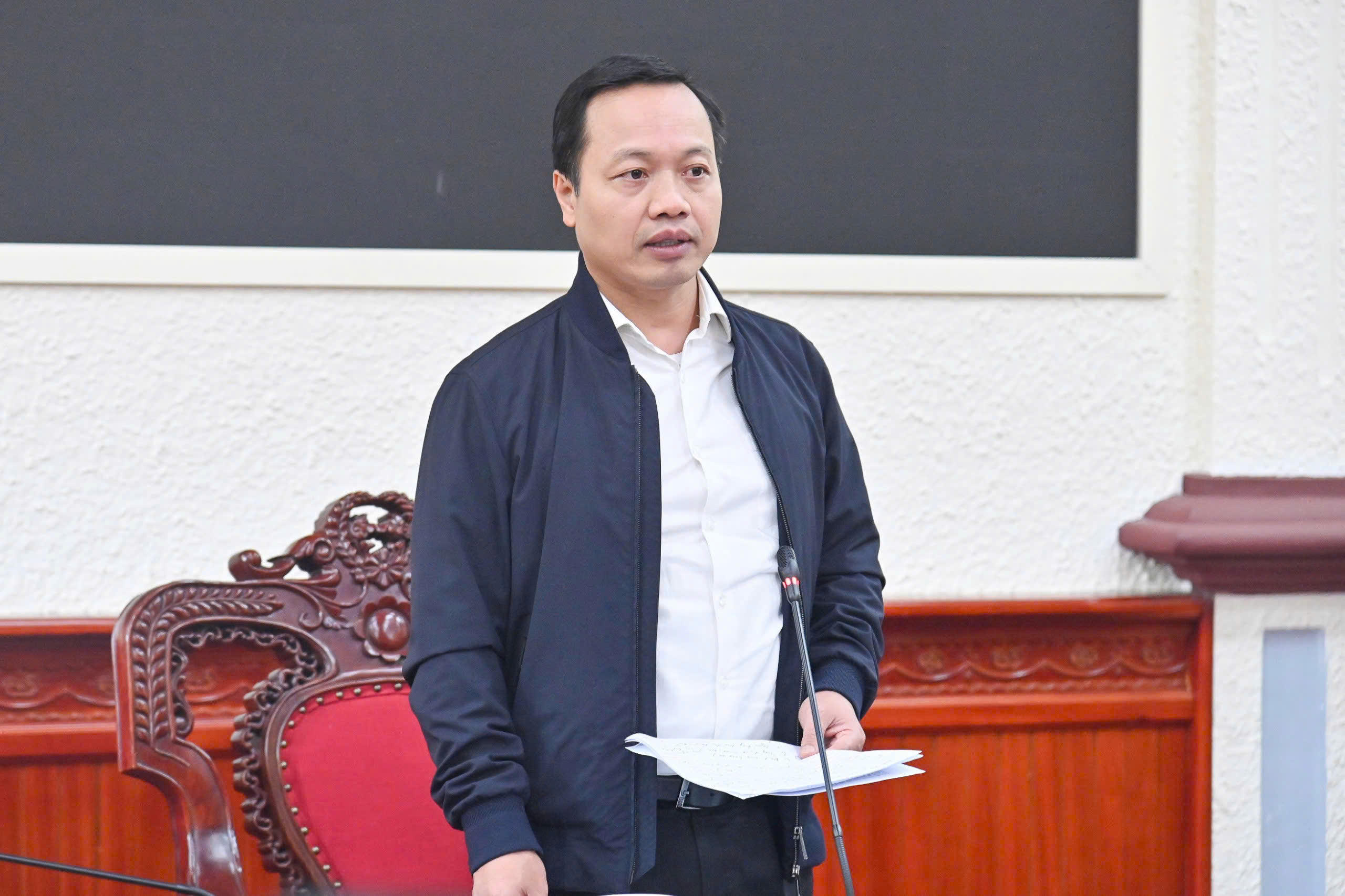 Vụ trưởng Vụ Pháp luật chung về xây dựng pháp luật Trần Anh Đức phát biểu. |