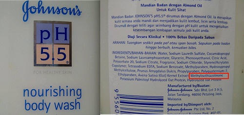Còn về sữa tắm trẻ em cũng không ít loại trong thành phần có chất có chất Methylisothiazolinone được ghi rõ trong bao bì. Đáng chú ý, ngay cả hãng Johnson and Johnson cũng có 3 sản phẩm có chất này là: Johnson’s PH5.5, Johnson’s Baby và Johnson’s Baby Bath & Milk. Sữa tắm cho trẻ em nhập khẩu Thái Lan là D-nee pure đang bán phổ biến trên thị trường cũng có thành phần cấm này. Loại Pureen tắm gội toàn thân cho trẻ em, Pureen cho trẻ sơ sinh nhập khẩu Malaysia, cũng chung thành phần như vậy.