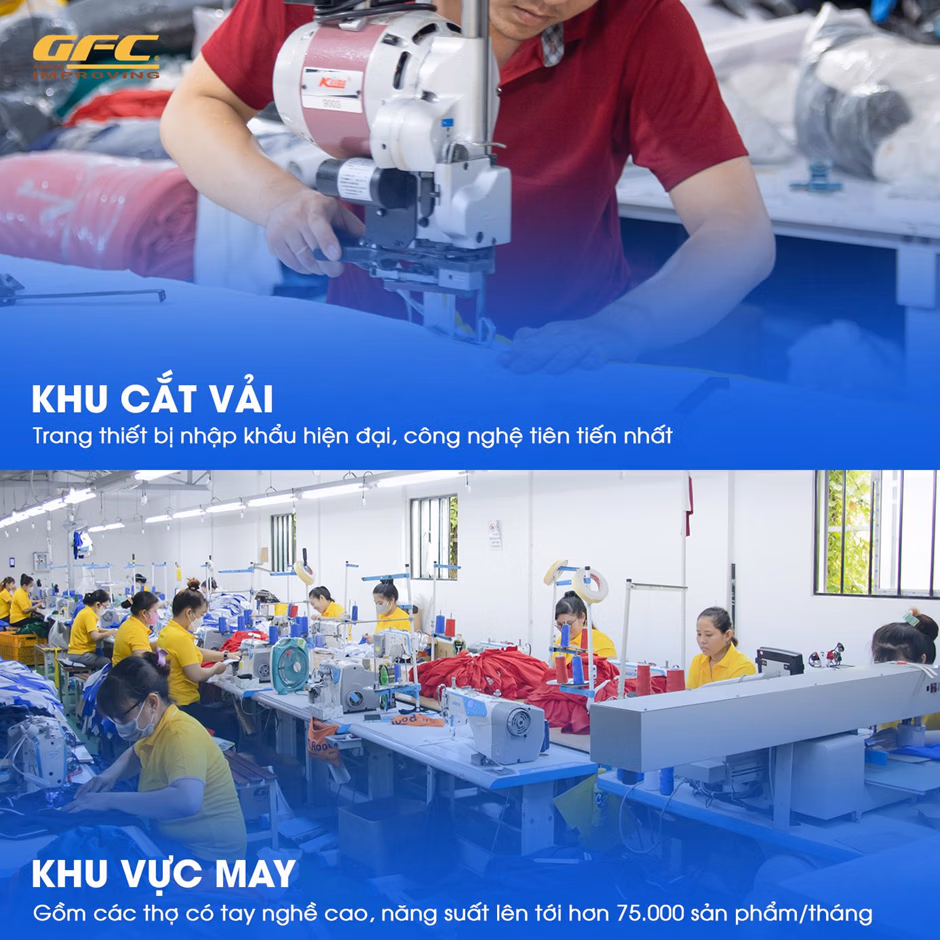 Với định hướng trở thành lựa chọn hàng đầu trong lĩnh vực sản xuất đồng phục, GFC Garment không ngừng đầu tư vào hệ thống máy móc, công nghệ và quy trình vận hành. Doanh nghiệp xây dựng hệ thống xưởng may khép kín đạt tiêu chuẩn, giúp kiểm soát toàn bộ quá trình sản xuất từ khâu chọn vải, thiết kế mẫu, cắt may, in thêu đến kiểm định và đóng gói.