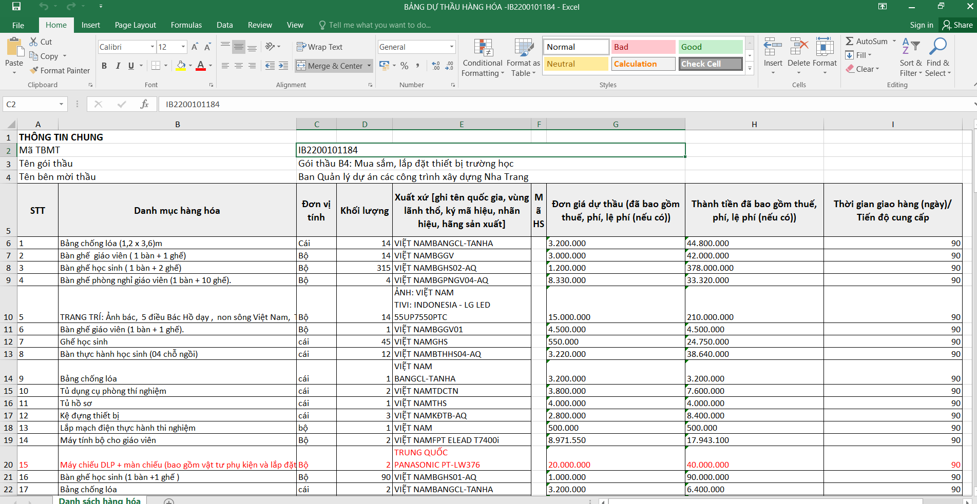 Một số vật tư thiết bị của gói thầu được nhà thầu chào giá cao hơn nhiều so với giá thị trường. |