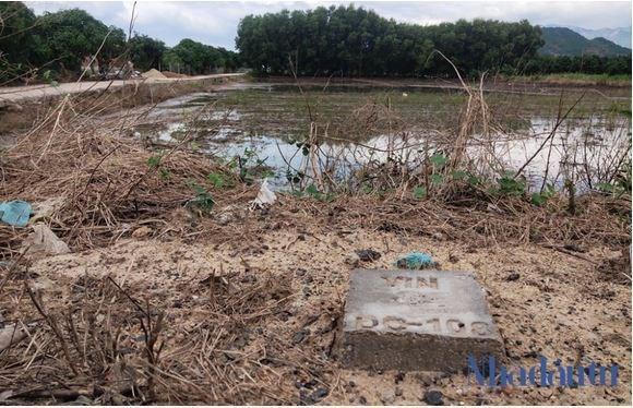 Nhiều "cò", mồi, môi giới dùng chiêu đổ trụ bê tông, chôn cột mốc giả để đánh lừa khách hàng cả tin rằng đây là cột mốc của dự án sắp triển khai ở huyện Cam Lâm (Khánh Hòa). (Ảnh: Việt Tùng) |