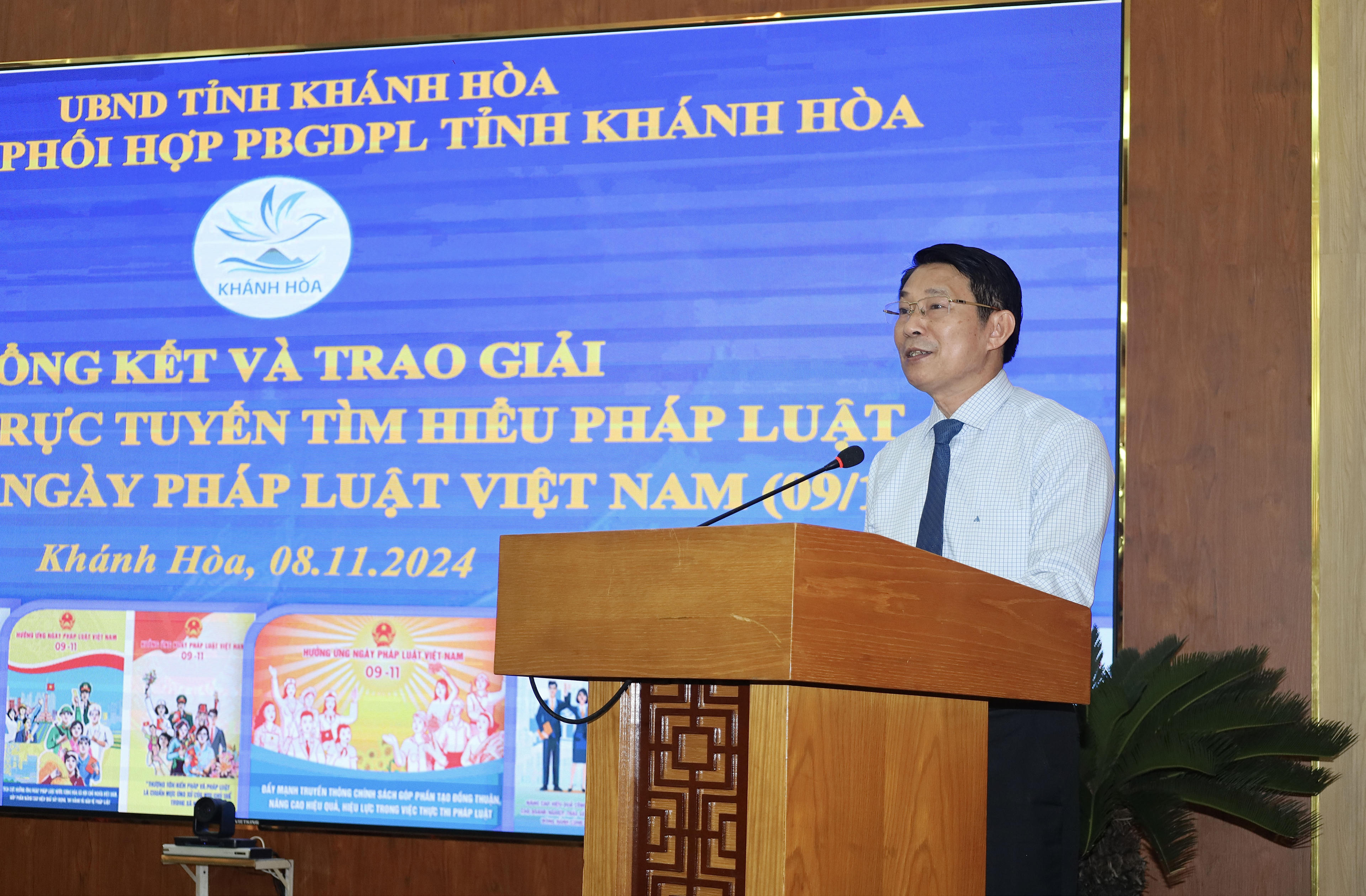 Phát biểu tại buổi lễ, ông Đinh Văn Thiệu, Phó Chủ tịch UBND tỉnh Khánh Hòa cho biết, việc tổ chức cuộc thi trực tuyến là hình thức tuyên truyền, phổ biến pháp luật hiệu quả.