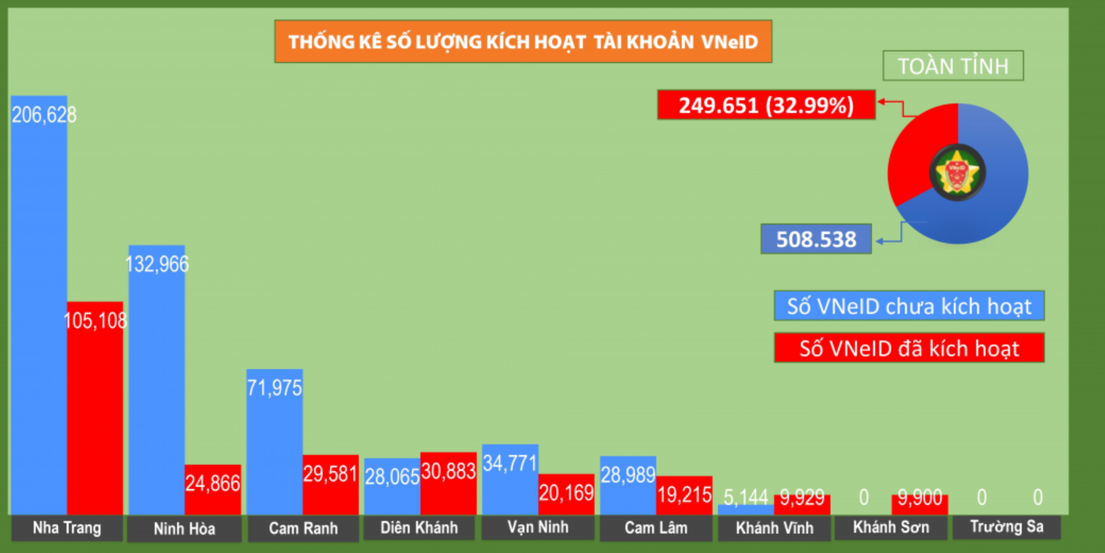 Số lượng kích hoạt tài khoản VNeID của tỉnh Khánh Hòa tính đến 30/6/2023 |