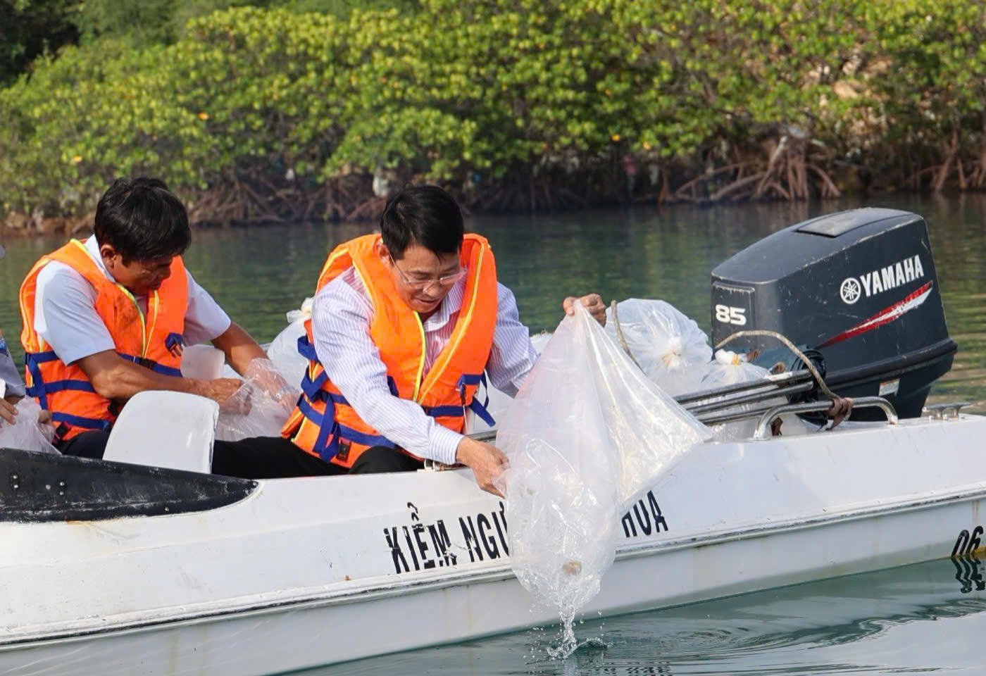 Sau phần nghi thức tại khu vực cầu tàu, các đại biểu di chuyển ra vùng rạn san hô và rừng ngập mặn ở Đầm Bấy để trực tiếp tham gia thả hơn 423.500 con cá, tôm giống về biển, mở đầu cho chuỗi hoạt động bảo tồn biển trong khuôn khổ Lễ hội Văn hóa – Du lịch biển năm 2025 và Tuần lễ Biển và Hải đảo Việt Nam.