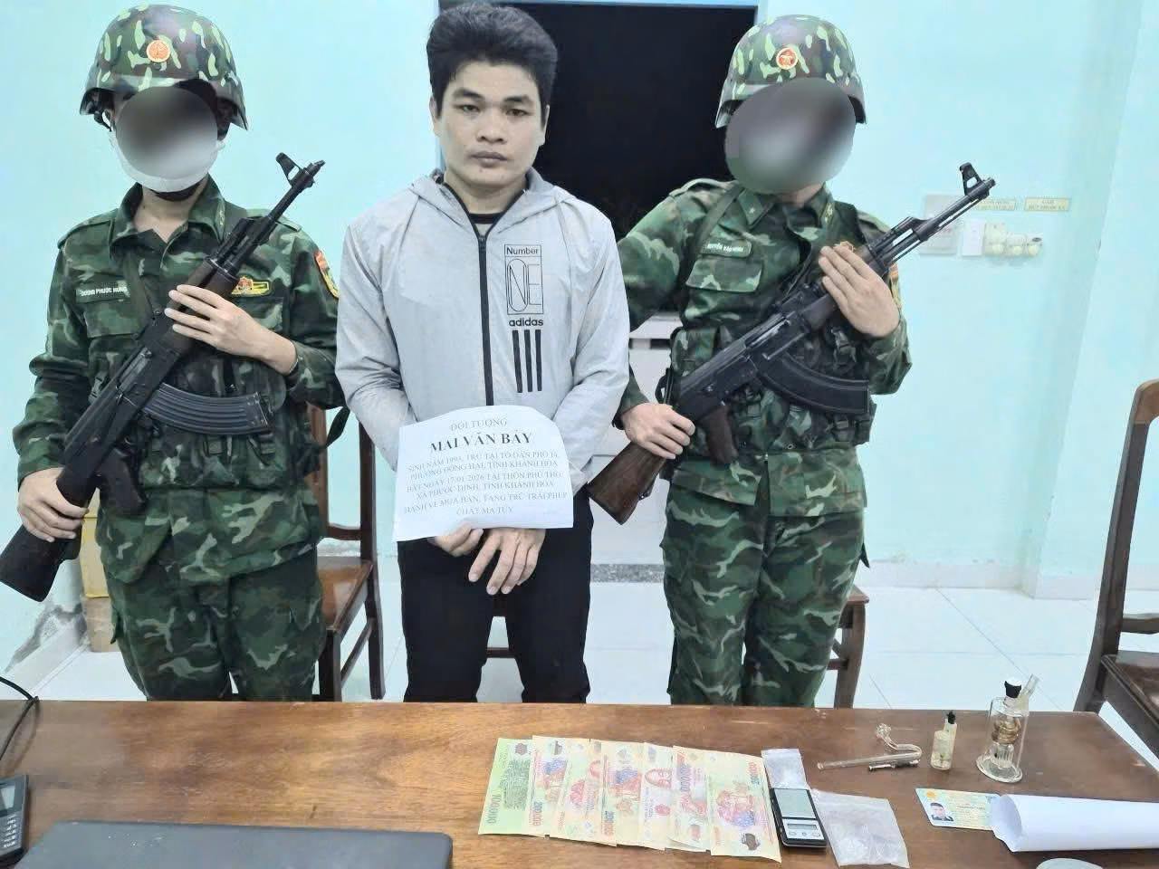 Trước đó, khoảng 12h45 ngày 17/01, Đồn Biên phòng Đông Hải chủ trì phối hợp với Phòng Nghiệp vụ Bộ đội Biên phòng và Công an tỉnh Khánh Hòa tổ chức tuần tra, mật phục tại khu vực ngã ba cảng cá Đông Hải, đường Bạch Đằng, Tổ dân phố 16, phường Đông Hải. Tại đây, lực lượng chức năng phát hiện Nguyễn Văn Cận (sinh năm 1985, trú phường Đông Hải) có biểu hiện nghi vấn liên quan đến ma túy.