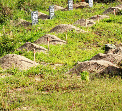 Những ngôi mộ không được an táng cẩn thận, cũng không hề được xây kiên cố mà chỉ chôn xuống một hố đất rất nông, phủ lên trên một lớp đất cát sơ sài, không được nêm chặt. Khu mộ lại nằm trên triền đồi dốc, cây cối mọc hoang dại. Sau cơn mưa tầm tã đêm ngày 4/8, một số ngôi mộ bị trôi tuột cả lớp đất cát phủ lên trên. Hàng chục công nhân đang khẩn trương chở xi măng, cát lên đánh hồ để làm kiên cố lại hòng đối phó với các chỉ đạo của nhiều cấp chính quyền.
