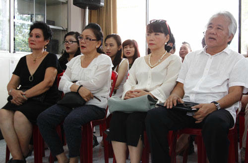 Đại diện gia đình nhạc sĩ Trịnh Công Sơn là ông Nguyễn Trung Trực và bà Trịnh Vĩnh Trinh (từ phải qua) nằm trong số khách mời tham gia nghi thức lễ.