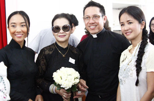 Trong lần về này, ngoài lễ thánh cho chồng, bà cùng ca sĩ Quang Thành (trái) tiếp tục thực hiện các công tác thiện nguyện, xã hội cho người nghèo. Khánh Ly cho biết, bà dành toàn bộ tiền phúng điếu trong tang lễ chồng ở Mỹ giúp người nghèo Việt Nam mổ mắt, xây dựng mái ấm tại TP HCM...