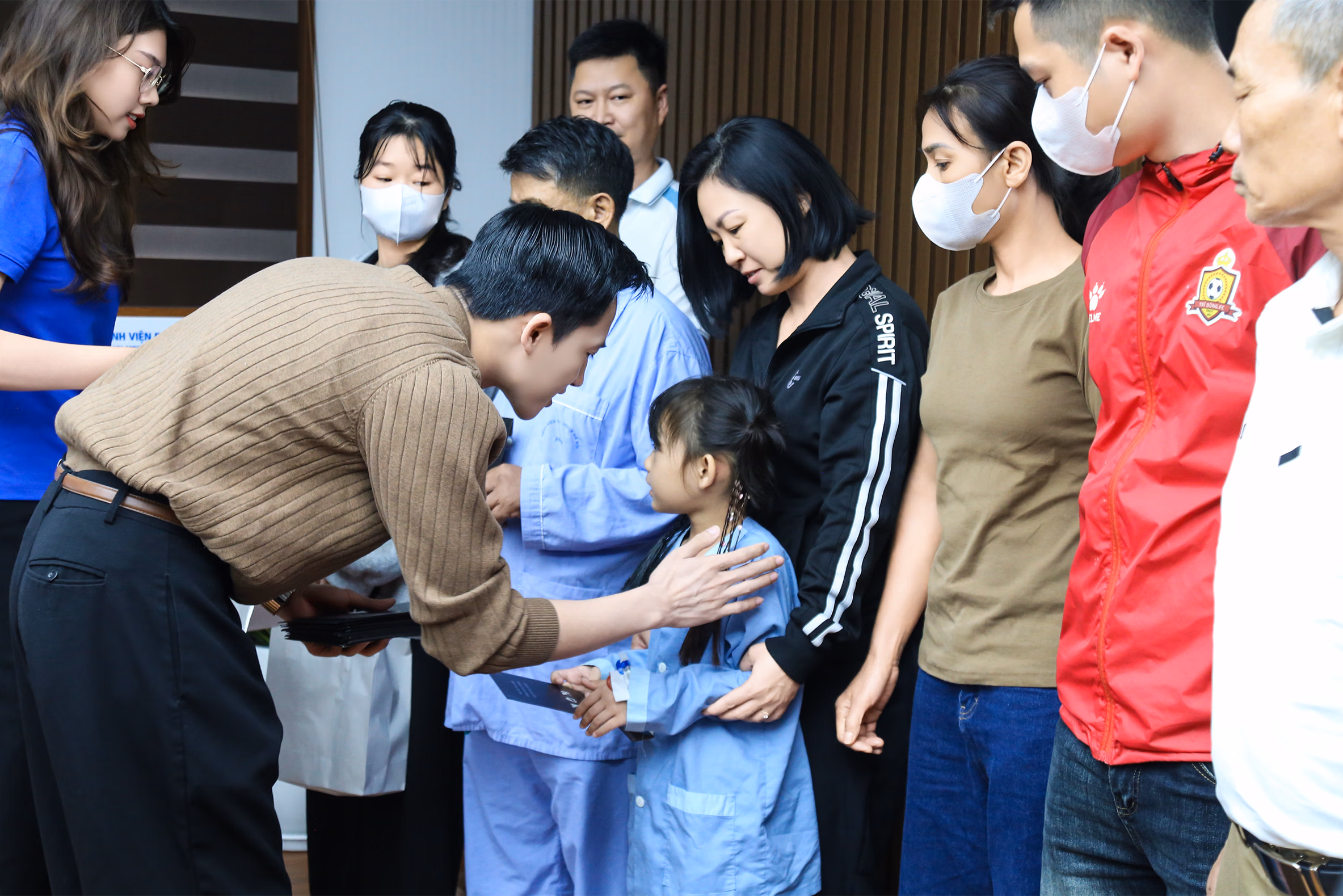 Tại Bệnh viện Đại học Y Hà Nội, đoàn công tác đã trao 40 suất quà cho các bệnh nhân có hoàn cảnh khó khăn, mỗi suất trị giá 2 triệu đồng, với tổng kinh phí 80 triệu đồng. Những phần quà được trao không chỉ mang ý nghĩa hỗ trợ về vật chất, mà còn là sự tiếp thêm tinh thần cho người bệnh và gia đình trong hành trình điều trị đầy thử thách.