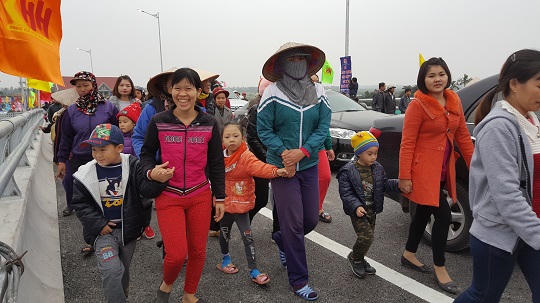 | Người dân huyện Vĩnh Bảo vui mừng ngày khánh thành cầu bê tông mới thay thế cầu phao đã cũ nát |