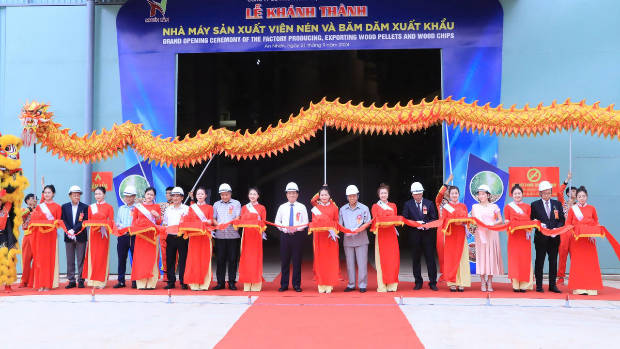 (PLVN) - Ngày 21/9, tại Cụm công nghiệp Nhơn Tân 1, xã Nhơn Tân, thị xã An Nhơn (Bình Định) đã diễn ra Lễ Khánh thành 2 Nhà máy sản xuất viên nén và dăm gỗ xuất khẩu do Công ty Cổ phần Năng lượng xanh Nhơn Tân làm chủ đầu tư với tổng mức đầu tư hơn 700 tỷ đồng