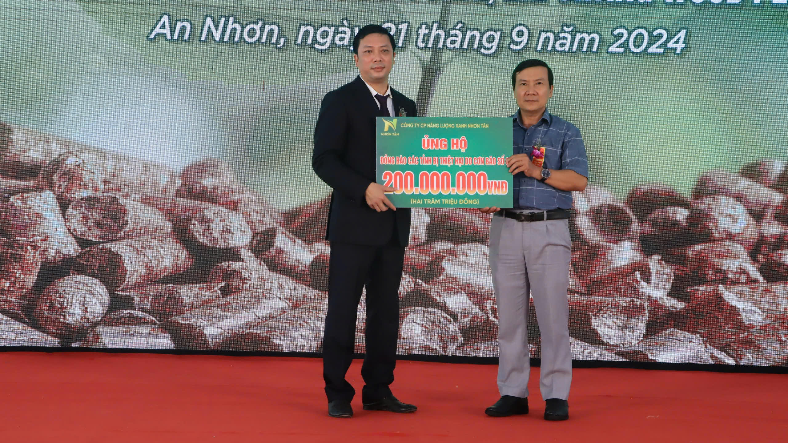 Được biết, trong khuôn khổ Lễ Khánh thành, Công ty Cổ phần Năng lượng xanh Nhơn Tân cùng với UBND tỉnh Bình Định đã tiến hành trao 20 căn nhà tình nghĩa cùng số tiền 200.000.000 đồng để ủng hộ đồng bào miền bắc bị ảnh hưởng do cơn bão số 3.