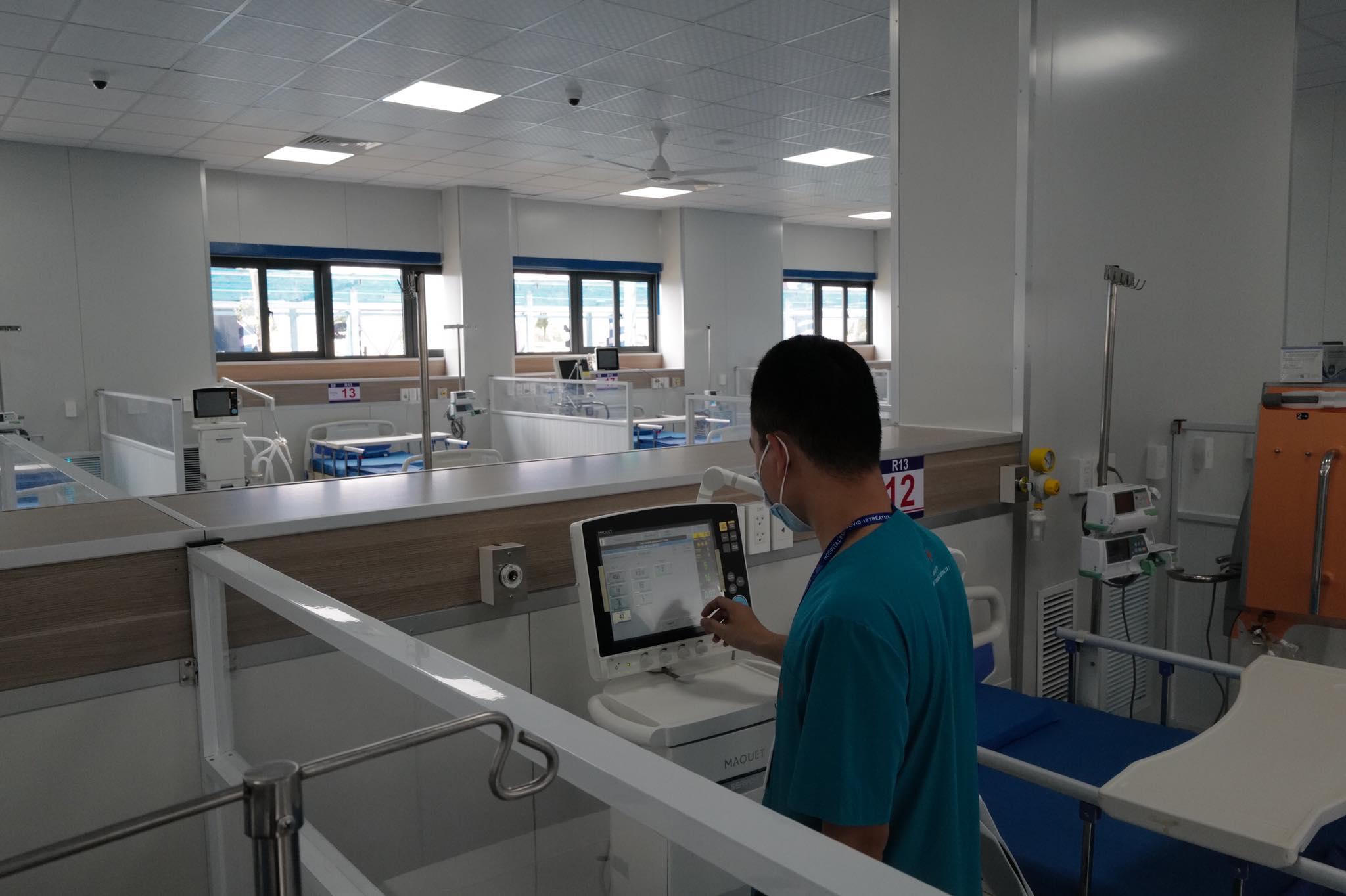 Một số khu vực đã được lắp đặt đầy đủ trang thiết bị như: Hệ thống vách ngăn, hệ thống cung cấp oxy, camera theo dõi, máy thở, máy lọc không khí cùng nhiều loại máy móc khác. |
