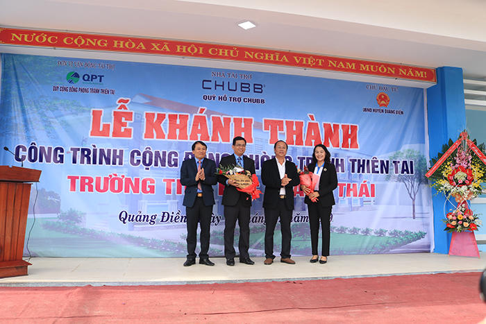 Công trình cộng đồng phòng, tránh thiên tai Trường tiểu học Quảng Thái được khởi công từ ngày 18/6/2019 với tổng mức kinh phí là 5 tỷ đồng. Trong đó, Quỹ cộng đồng phòng, tránh thiên tai vận động Quỹ hộ trợ Chubb, Công ty TNHH Bảo hiểm nhân thọ Chubb Việt Nam được 2,5 tỷ đồng và nguồn vốn đối ứng của địa phương cùng các nguồn vốn huy động hợp pháp khác là 2,5 tỷ đồng.