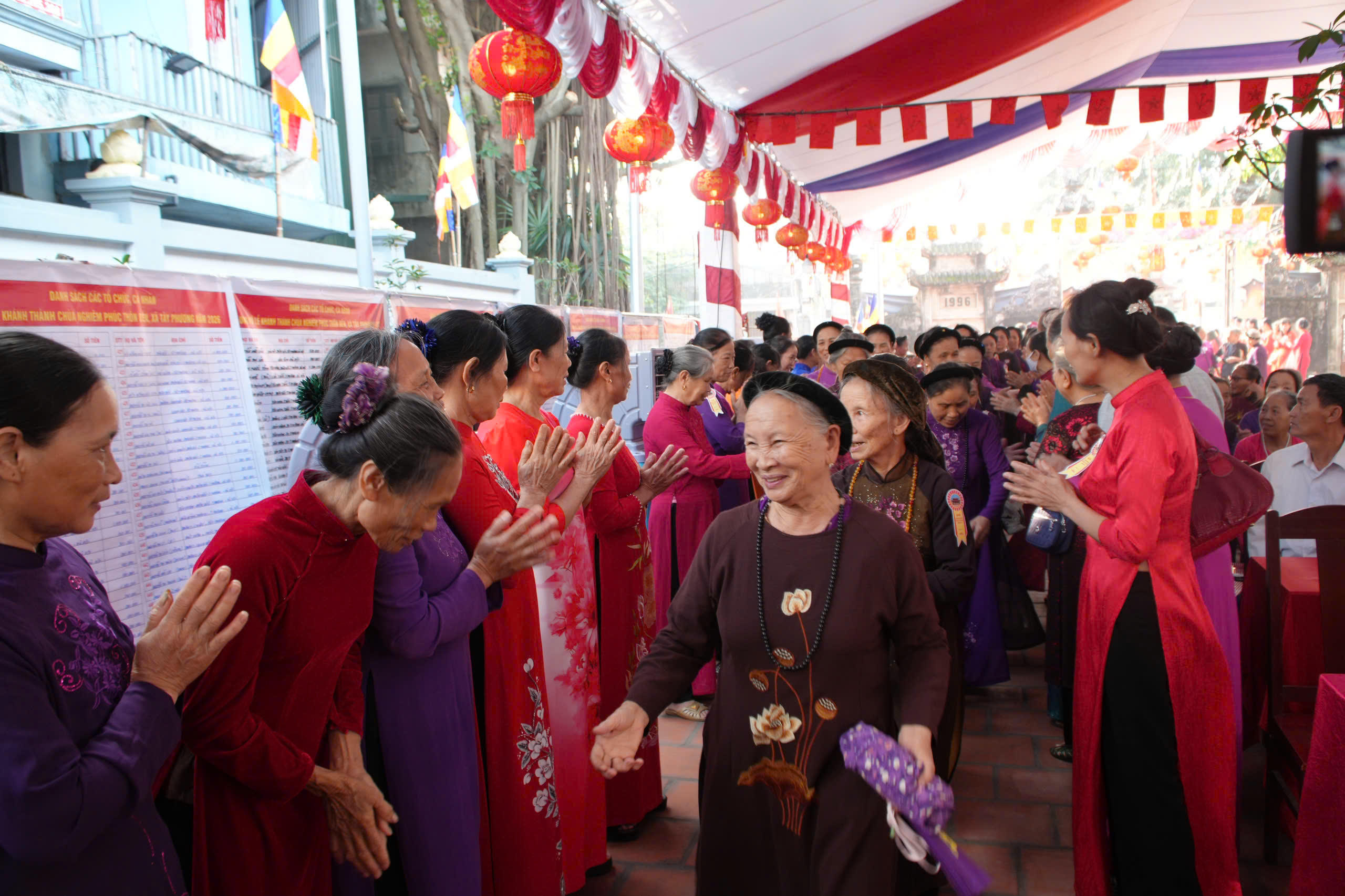 Đến dự Lễ Khánh thành chùa, có đại diện Đảng ủy, HĐND, UBND xã Tây Phương, các đoàn tăng ni, phật tử, hội đồng giáo xứ, bà con nhân dân thôn Bến và các vùng lân cận.