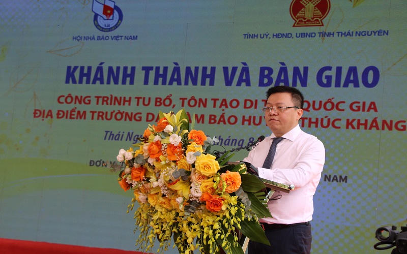 (PLVN) - Sáng 9/8, Hội Nhà báo Việt Nam phối hợp với tỉnh Thái Nguyên tổ chức lễ khánh thành, bàn giao công trình tu bổ, tôn tạo Di tích Quốc gia Địa điểm Trường dạy làm báo Huỳnh Thúc Kháng tại xã Tân Thái, huyện Đại Từ, tỉnh Thái Nguyên.