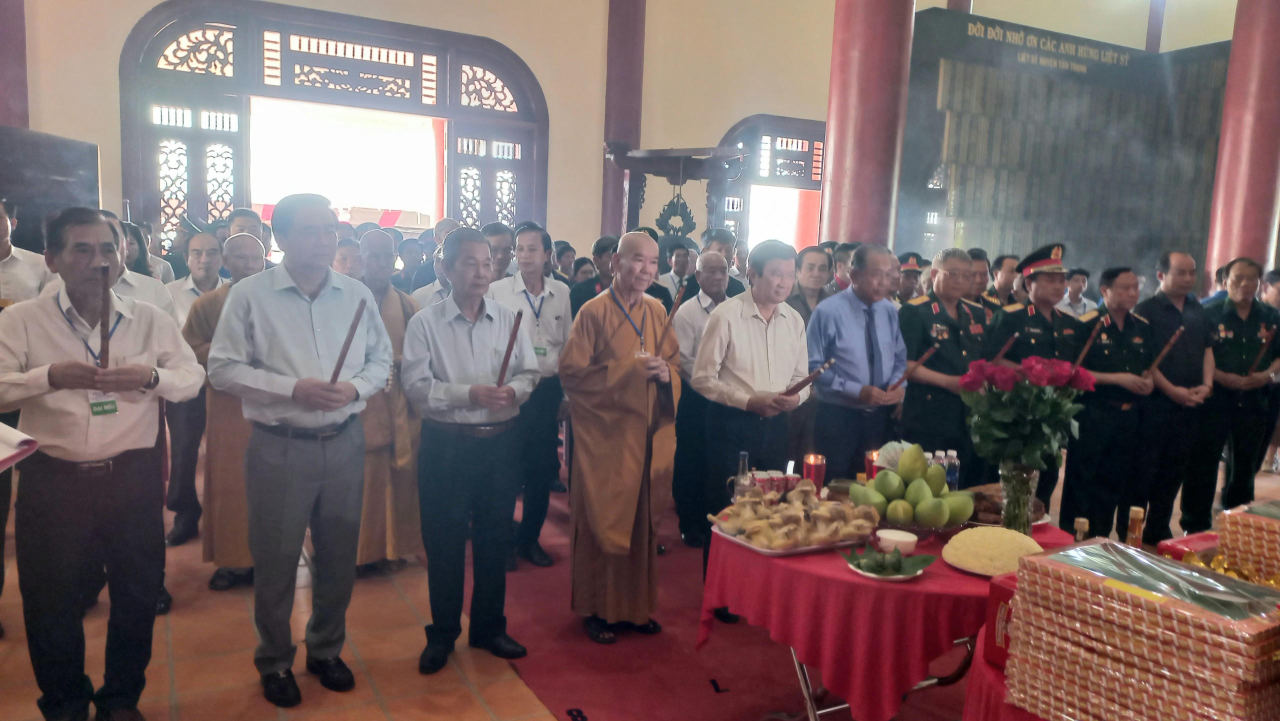 Các đại biểu dâng hoa, dâng hương tri ân Chủ tịch Hồ Chí Minh và các anh hùng liệt sĩ. Ảnh: Luận Quân |