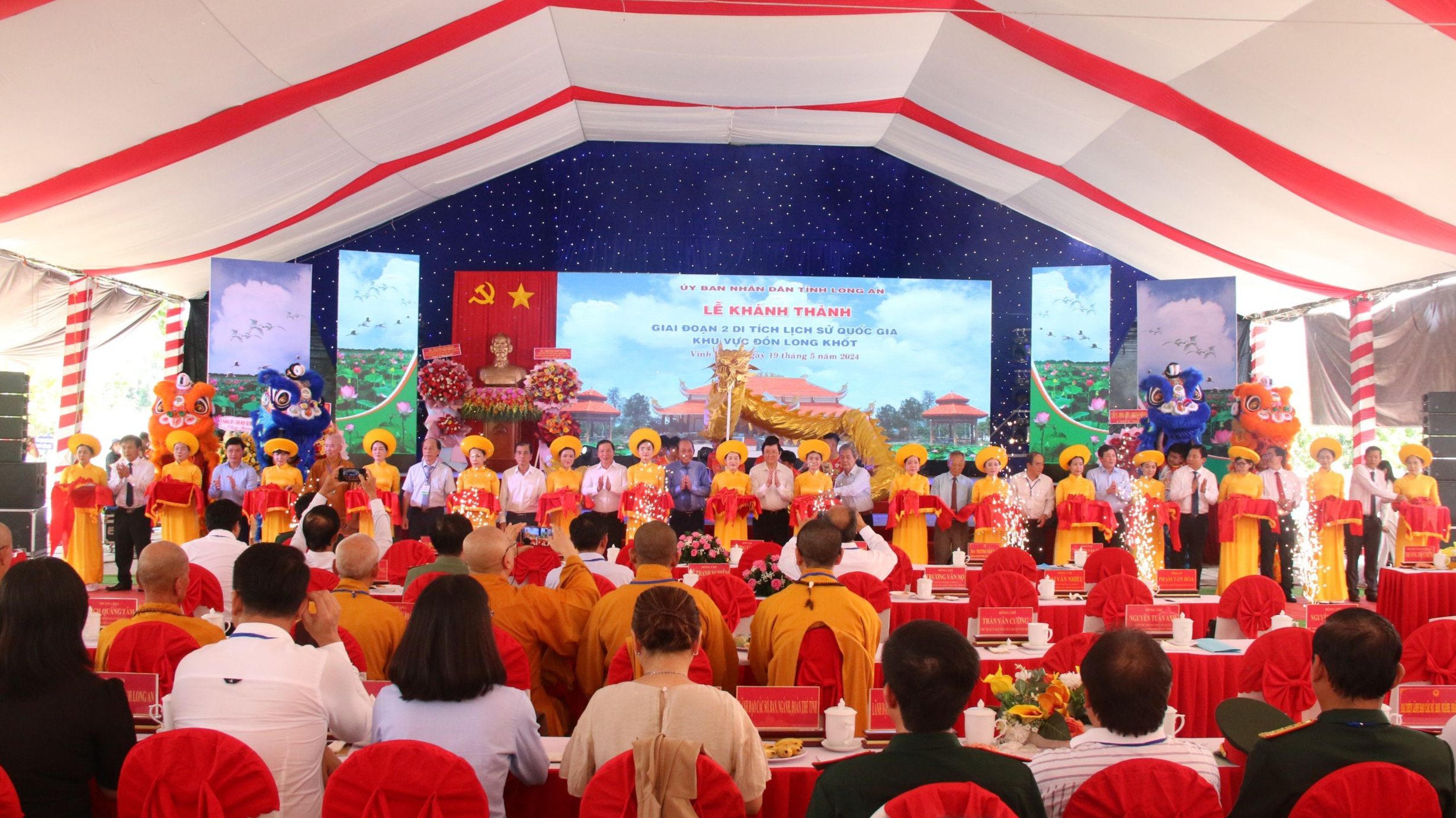 Dự lễ có ông Trương Tấn Sang - Nguyên Ủy viên Bộ Chính trị, nguyên Chủ tịch nước; ông Trương Hòa Bình - nguyên Ủy viên Bộ Chính trị, nguyên Phó Thủ tướng thường trực Chính phủ; nguyên lãnh đạo Tỉnh ủy, UBND tỉnh qua các thời kỳ; Phó Bí thư Tỉnh ủy, Chủ tịch HĐND tỉnh - Nguyễn Văn Út; lãnh đạo tỉnh, Quân khu 7 và một số sở, ngành tỉnh, huyện Vĩnh Hưng (Long An); đại diện Ban Liên lạc Cựu chiến binh Trung đoàn 174 và đông đảo cựu chiến binh, thân nhân liệt sĩ cũng như người dân trên địa bàn huyện đến dự.